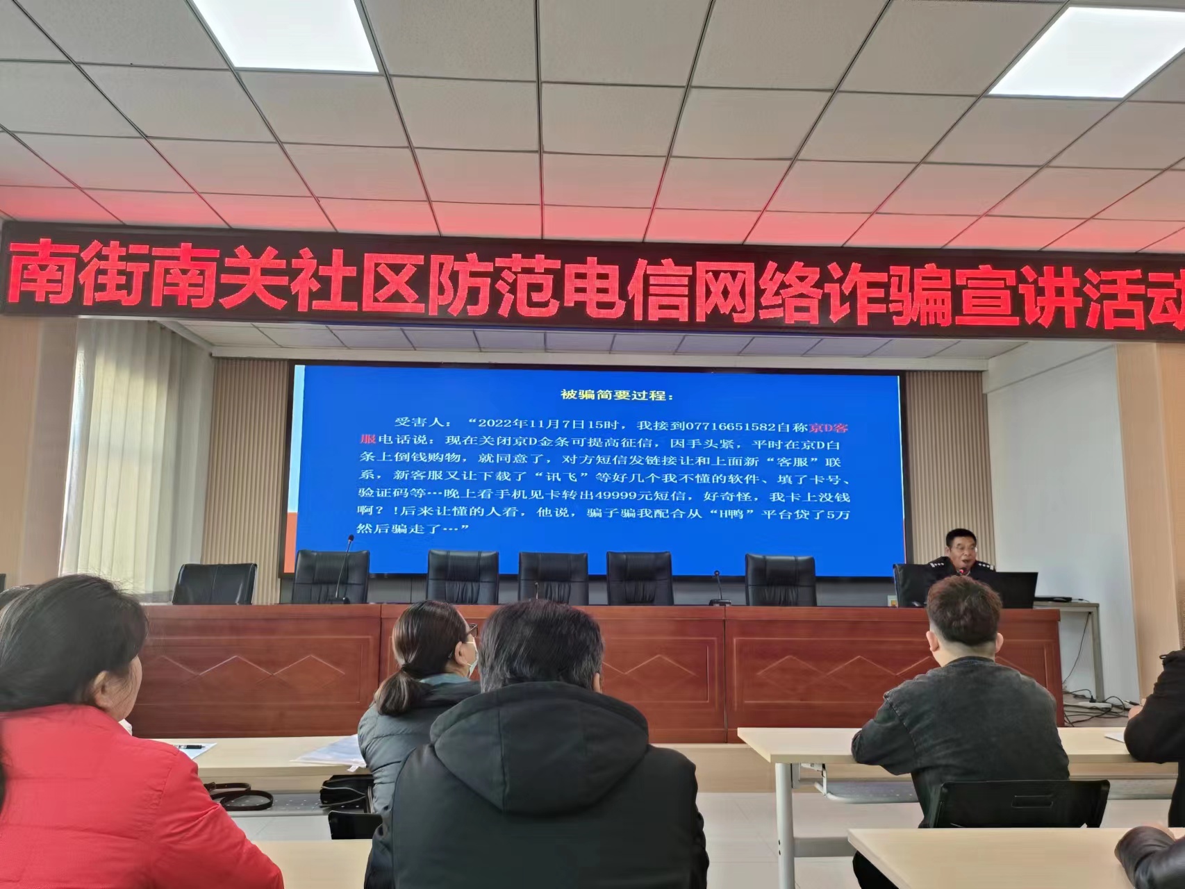 中國張掖網甘州訊 近年來,隨著互聯網、通信網絡不斷發展,不法分子利用電話、網絡、郵寄快遞、偽基站等現代通訊技術和網絡結算方式實施詐騙的犯罪活動也呈逐年上升趨勢。為了提高社區居民的識別和防范能力,12月29日,甘州區南街街道南關社區邀請南街街道派出所警官為居民進行防范電信詐騙知識宣傳講座。