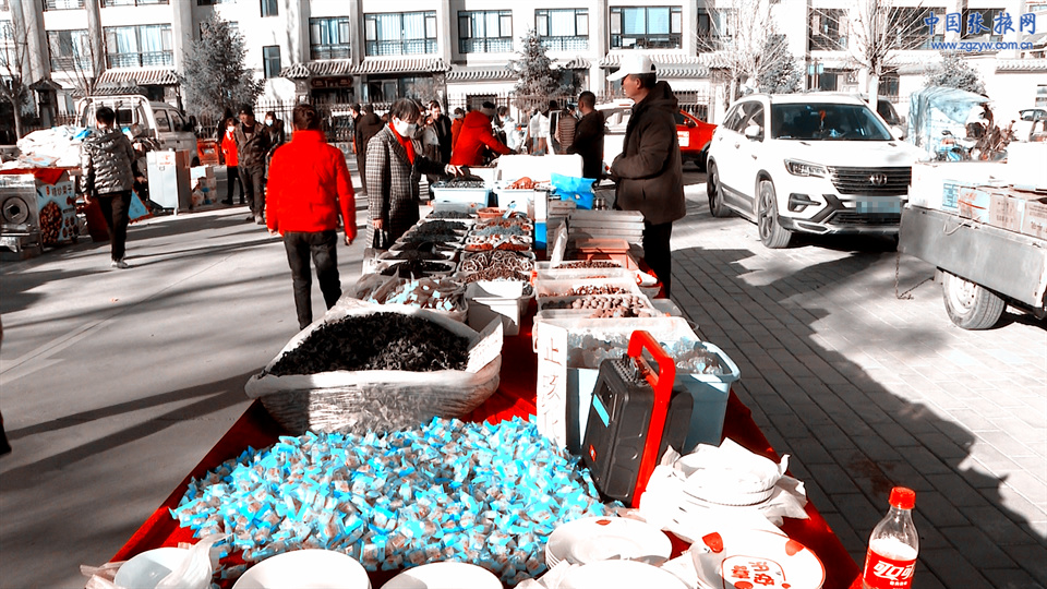 趕集現場,帶著濃郁年味和地方特色的產品堆滿了展臺,不僅有大蒜、粉條等土特產,也有各類特色小吃、服裝及生活用品等。來往的市民紛紛駐足在各展臺前,詢價、挑選、品嘗,現場一片熱鬧的氣氛。