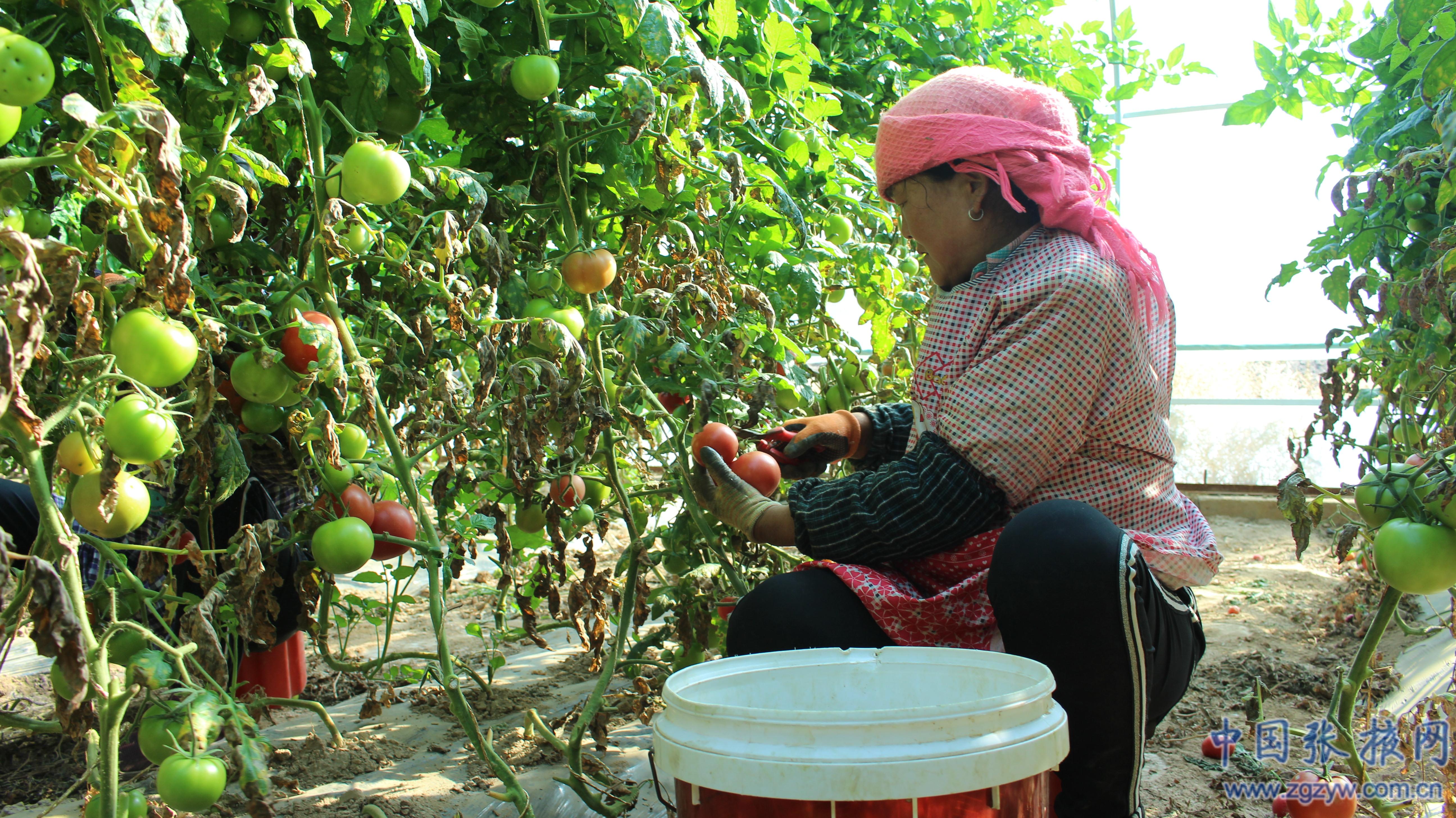 走進墩子村絲路寒旱農業示范園區日光溫室大棚里,一串串成熟的西紅柿長勢旺盛,蜜薯、香椿等新品種映入眼簾,工人們正忙著吊蔓、降秧、修枝、采摘……正在棚內忙活的負責人劉剛說道:“我這大棚里主要種植的是車厘子、郁金香水蜜桃、新48油桃、大突圍白桃等特色經濟苗木,現在利用冬季空閑時間,在林下嘗試種植辣椒、西紅柿、蜜薯、香椿等,目前經濟效益比較好,尤其蜜薯,非常受市場青睞。每天大概有7-8名農戶在大棚里務工,采摘的時候,至少需要20人,村里的婦女們在家門口一天就能收入一百多元。”“對對,原來秋收后只能待在家里準備過冬,現在大棚內打工一天能賺140元,還不用出遠門,實在好。”墩子村二社王菊蘭大姐補充道。