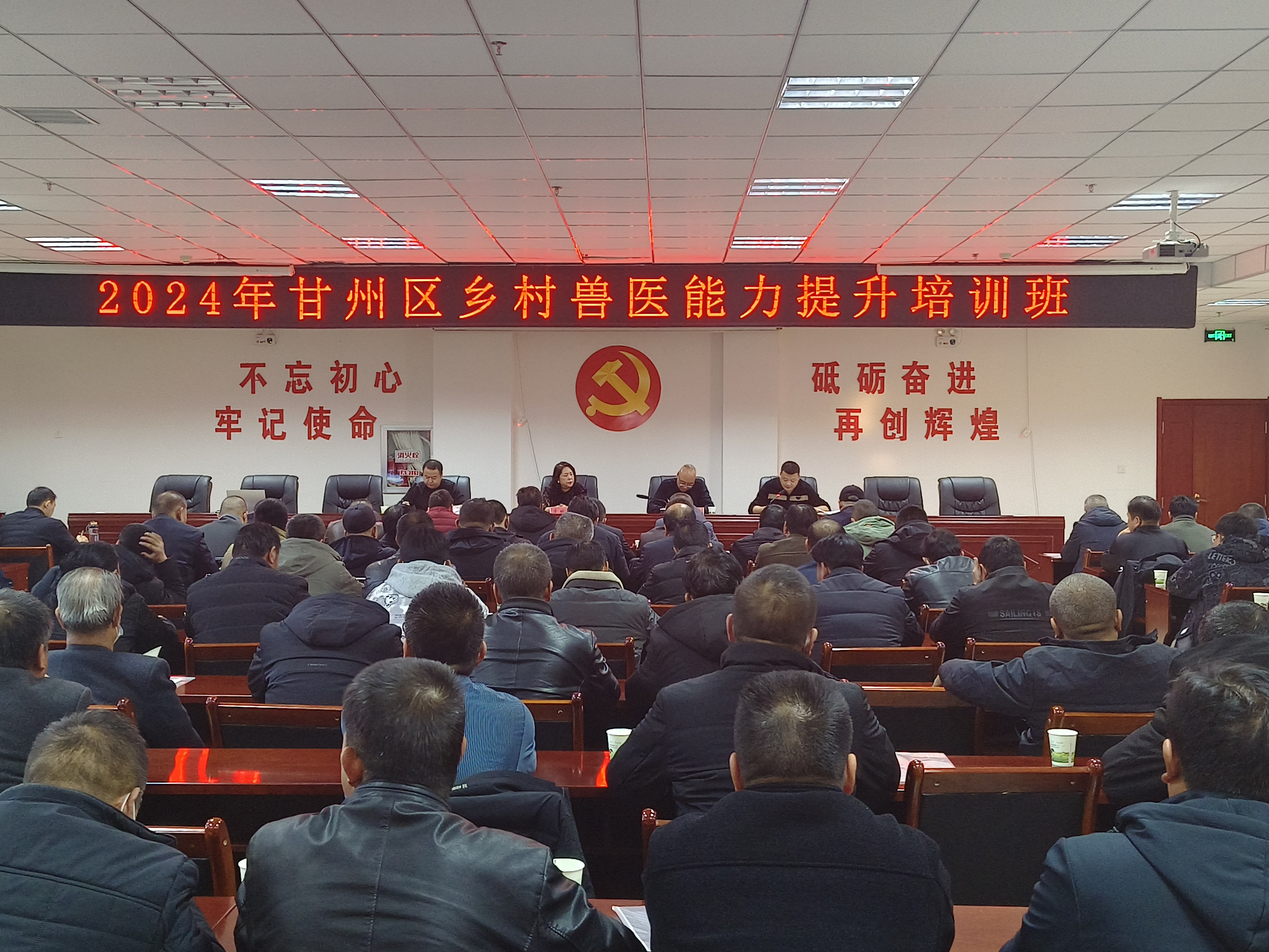 中國張掖網甘州訊 為進一步加強全區鄉村獸醫從業管理,完善基層獸醫服務體系,提高鄉村畜牧獸醫人員技能和服務水平,著力培養一支高質量的鄉村獸醫隊伍。1月16日,甘州區農業農村局舉辦2024年鄉村獸醫培訓班。區農業農村局分管領導、區動物衛生監督所官方獸醫、全區鄉村獸醫共計110人參訓。