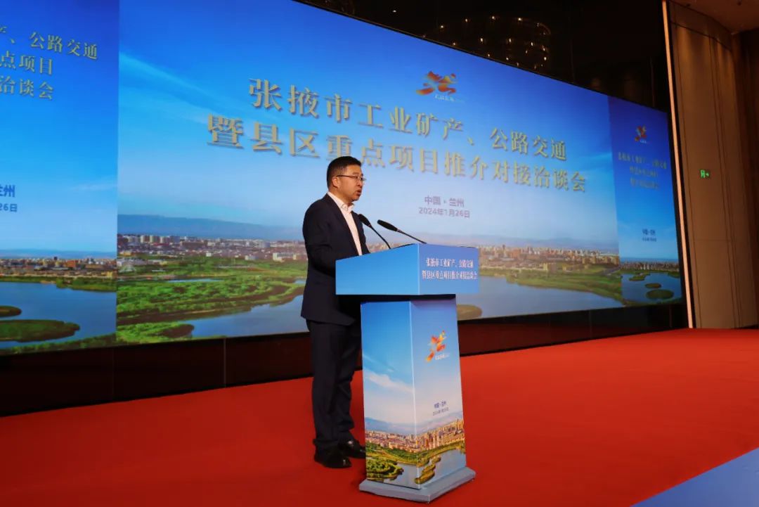 張掖市委副書記、市長趙立香致辭;省工信廳副廳長黃寶榮、省政府國資委副主任陸世杰、省金融辦副主任李冰等出席;市委常委、常務副市長劉力江主持,副市長郝效冬推介我市工業礦產和公路交通重點項目,六縣區及經開區負責同志先后推介重點項目。