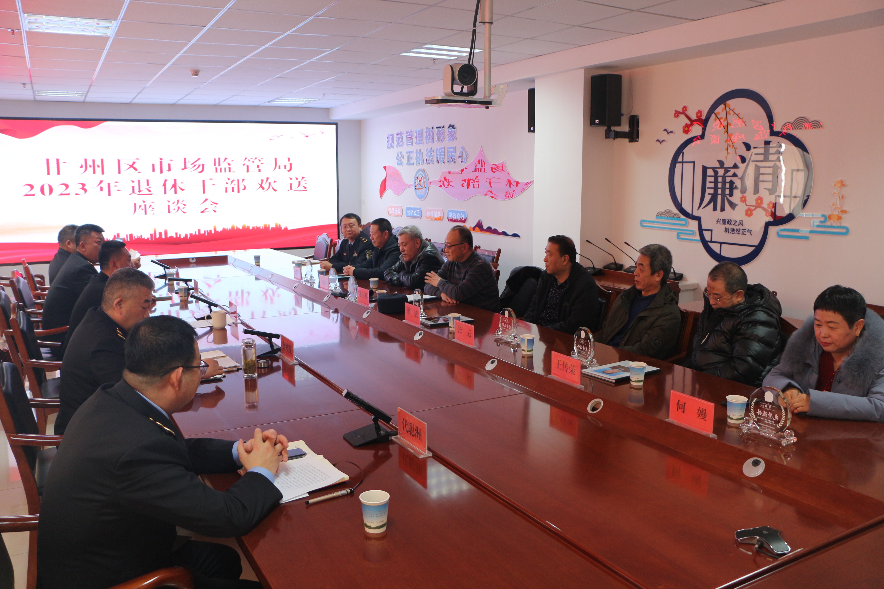 中國張掖網甘州訊 為進一步增強退休干部的政治榮譽感、組織歸屬感和生活幸福感,激勵退休干部牢記初心使命、傳承優良作風、永葆市場監管本色。1月25日,甘州區市場監管局舉行退休干部歡送座談會,為退休干部送上殷切祝福和暖心關懷。