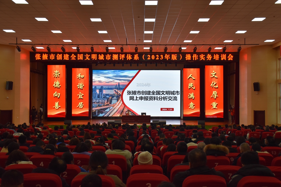 中國張掖網訊 1月31日,張掖市舉行市、區創建全國文明城市測評體系(2023)操作實務培訓會。市、區創城辦,各創建單位和各創建片區街道、社區相關人員560余人參加培訓會。