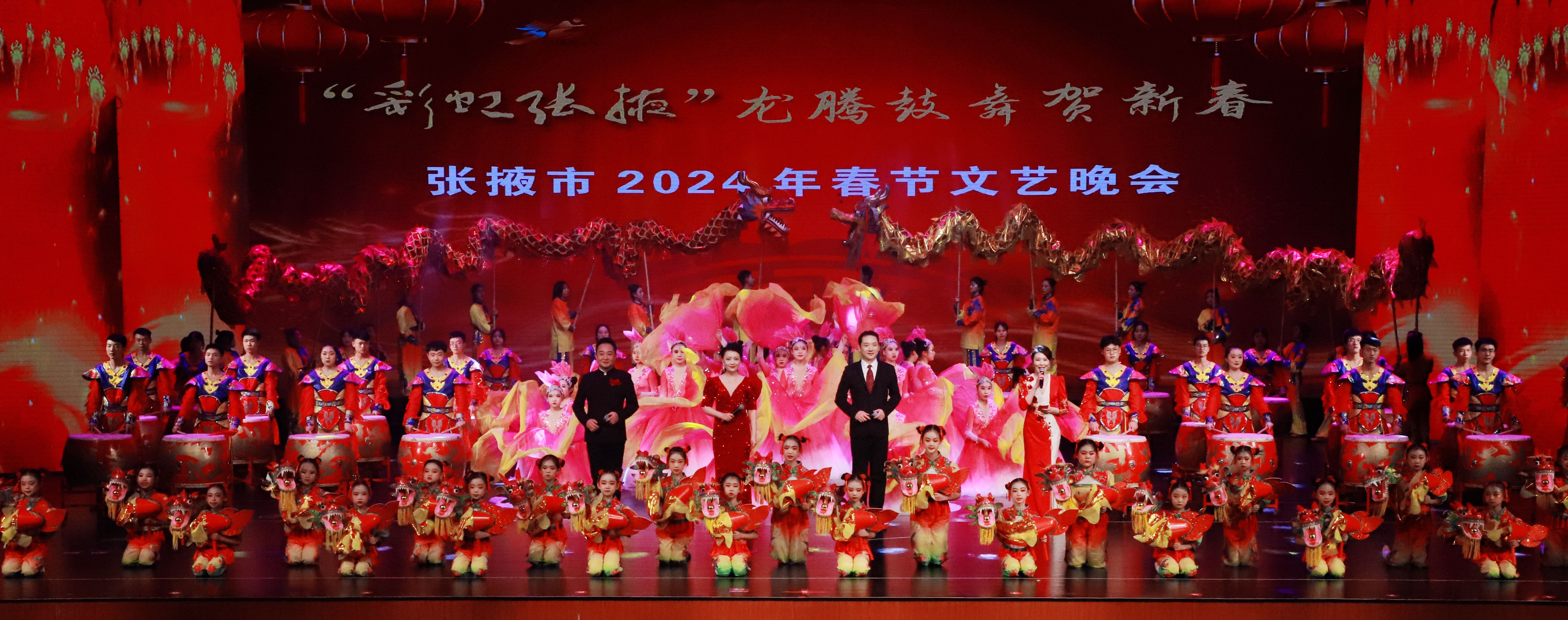 晚會分龍騰盛世、祁連春韻、彩虹張掖、逐夢未來四個篇章,將舞蹈、歌曲、戲劇、雜技、相聲、器樂等有深度、有內涵、高品質節目展現給觀眾,充分展現了張掖人民堅定筑牢文化自信根基,積極向上、奮發進取的精神風貌,也演繹了人民群眾對美好生活的新期待、新愿景,為龍年新春營造出喜慶、歡樂、祥和的節日氛圍。