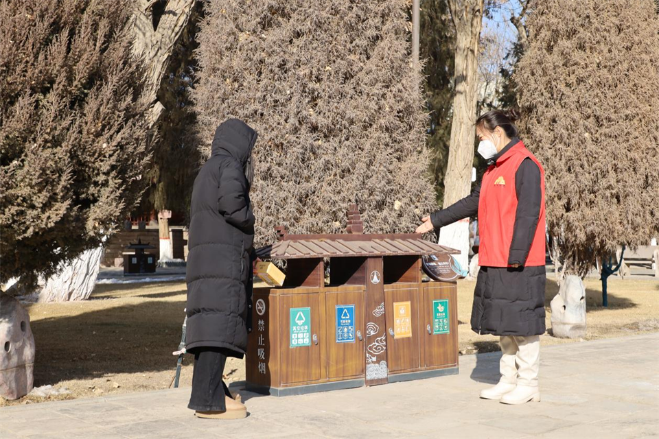 景區工作人員和志愿者也嚴格要求自己,規范言行,從自身出發帶動身邊人開展針對不文明行為的督導。并勸導游客將垃圾扔到垃圾桶內,不隨地亂扔,保持景區環境干凈衛生。