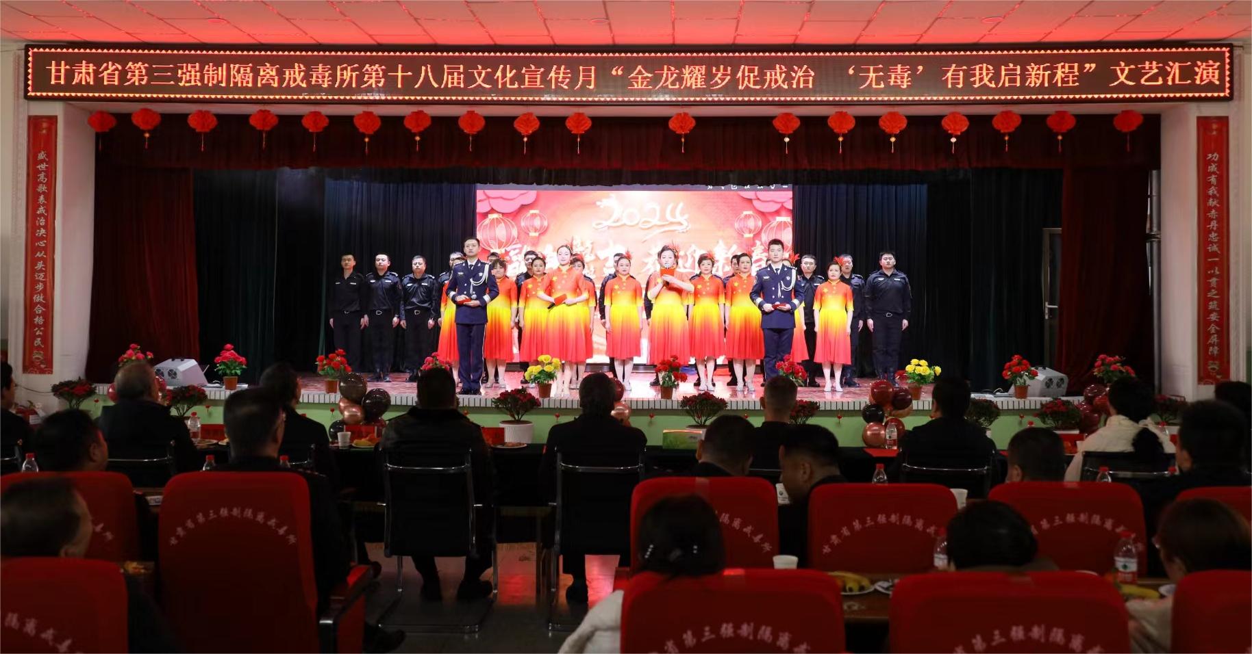 中國張掖網訊 2月23日,元宵佳節來臨之際,甘肅省第三強制隔離戒毒所第十八屆“文化宣傳月”系列活動“金龍耀歲促戒治,‘無毒’有我啟新程”文藝匯演在該所多功能大廳舉行。旨在豐富全體戒毒人員精神文化生活,提升鞏固戒毒效果,重拾對美好生活的向往。