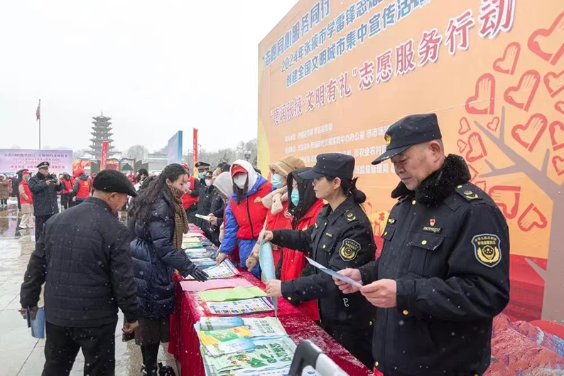 “希望通過今天的志愿服務(wù)推介,能夠給大家傳遞更多文明理念,引導(dǎo)更多的群眾參與到文明城市的創(chuàng)建中來……”3月5日上午,在全市“志愿同心服務(wù)同行·文明相約張掖有禮”2024年張掖市學(xué)雷鋒志愿服務(wù)月暨創(chuàng)建全國文明城市集中宣傳活動啟動儀式結(jié)束后,市場監(jiān)管干部現(xiàn)場設(shè)點宣傳講政策,積極向過往群眾宣傳普及文明餐桌、誠信經(jīng)營等文明理念,大力倡導(dǎo)“光盤行動”“空瓶行動”,扎實推進文明誠信經(jīng)營建設(shè),號召廣大群眾共筑文明之風(fēng),共建文明城市,吸引了不少群眾駐足圍觀。現(xiàn)場發(fā)放宣傳材料1000余份,取得了較好的宣傳效果。