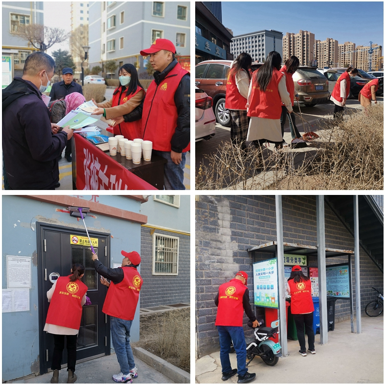 活動中,志愿者們身穿紅馬甲、手拿清潔工具,有的擦灰塵,有的拾煙頭、有的撿垃圾,有的在整理亂停亂放的自行車輛,還有的向居民宣傳節水節碳、安全出行、垃圾分類等文明行為理念,紛紛為創建文明城市貢獻自己力量。