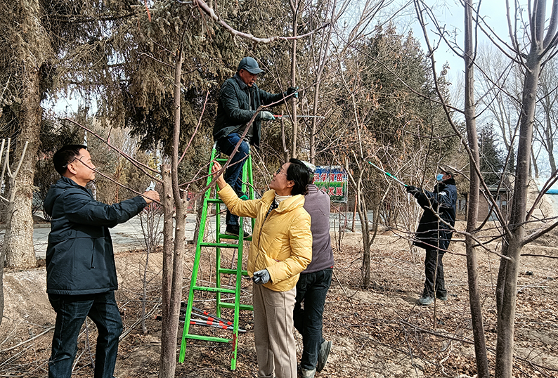 中國張掖網民樂訊 近日,甘肅祁連山管護中心大河口自然保護站種苗引育基地搶抓有利時機,全面開展苗圃地樹木整形修剪工作。