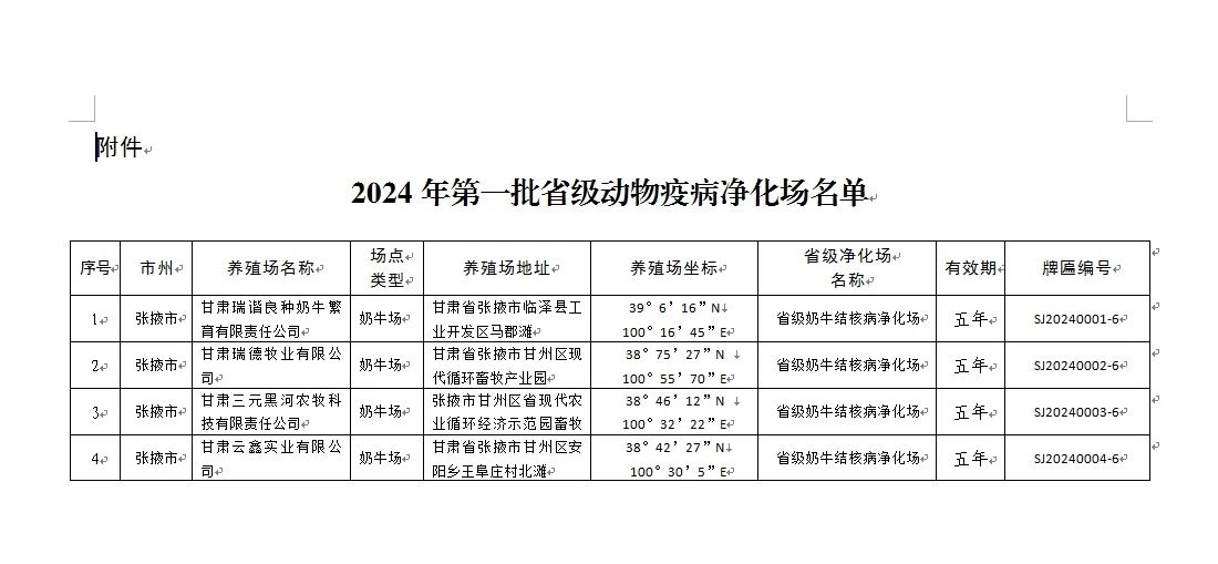 中國張掖網訊 近日,張掖市4家規模養殖場通過省級奶牛結核病凈化場驗收評估,分別是甘肅瑞諧良種奶牛繁育有限責任公司、甘肅瑞德牧業有限公司、甘肅三元黑河農牧科技有限責任公司和甘肅云鑫實業有限公司。至此,我市通過省級驗收的動物疫病凈化場已累計達到6家。