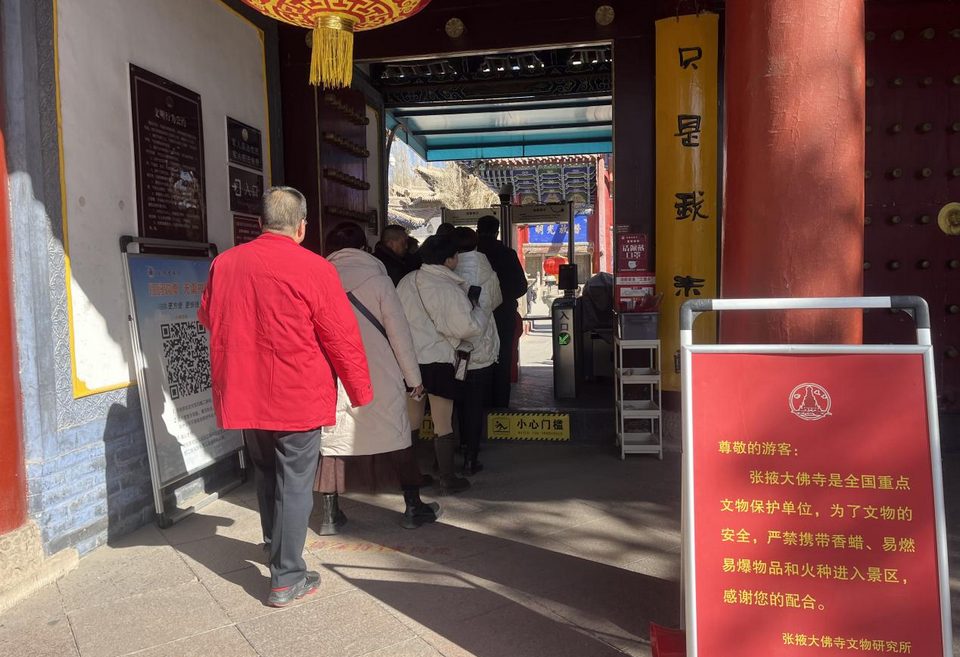 在張掖大佛寺記者看到,大部分游客都能自覺有序排隊(duì)、自覺遵守公共秩序,用文明行為為假期出游添彩。