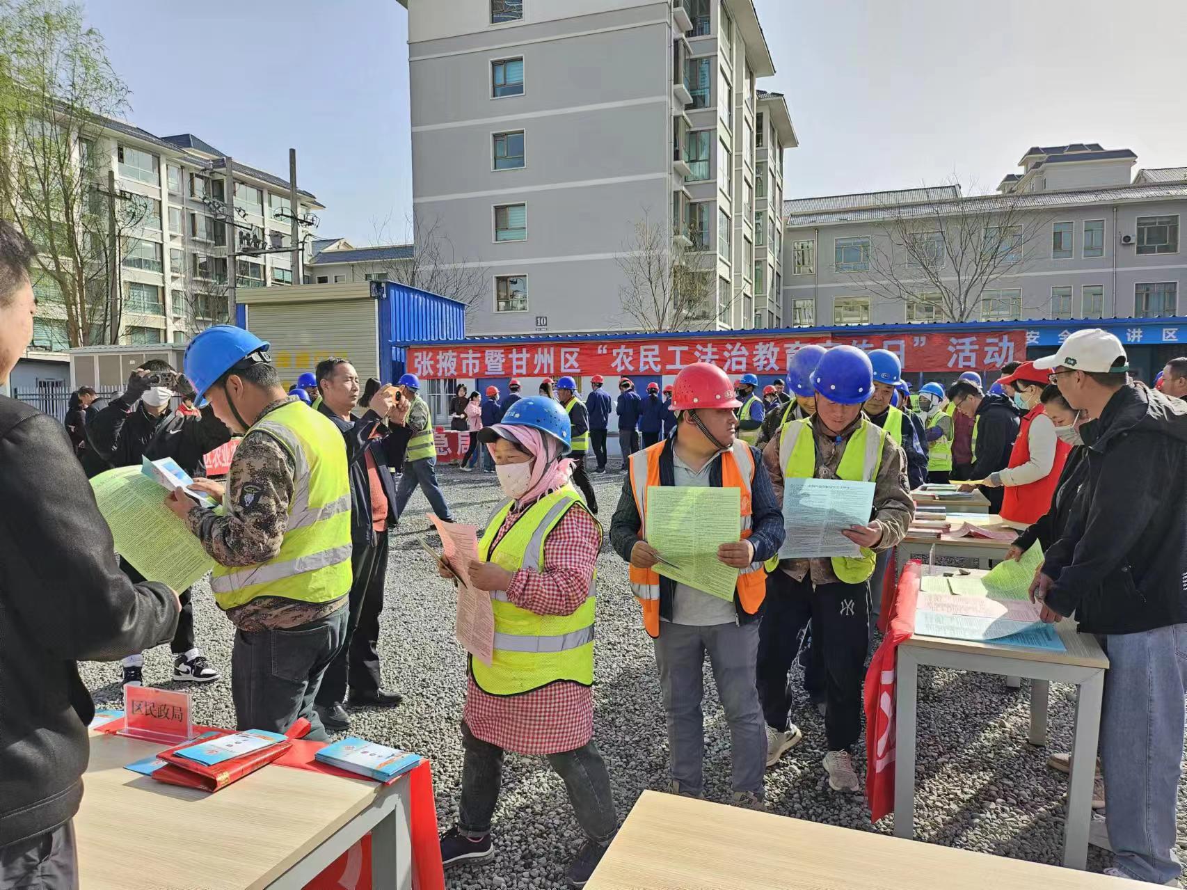 中國張掖網(wǎng)訊 4月8日,張掖市和甘州區(qū)農(nóng)民工工作領(lǐng)導(dǎo)小組辦公室在甘肅省河西區(qū)域醫(yī)療中心建設(shè)項目工地聯(lián)合舉辦“我為群眾辦實事 春風(fēng)送法暖民心”2024年農(nóng)民工法治宣傳教育日活動。