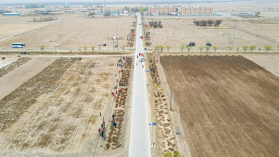 農田林網在防風固沙、保持水土、改善農田生態環境、保障農業生產條件等方面發揮著重要作用。植樹現場,大家在林業技術人員指導下,鏟土挖坑、培土圍堰、提水澆灌,一道由新疆楊、鹽松等抗逆性強的適生樹種組成的農田防護林網逐漸成型。