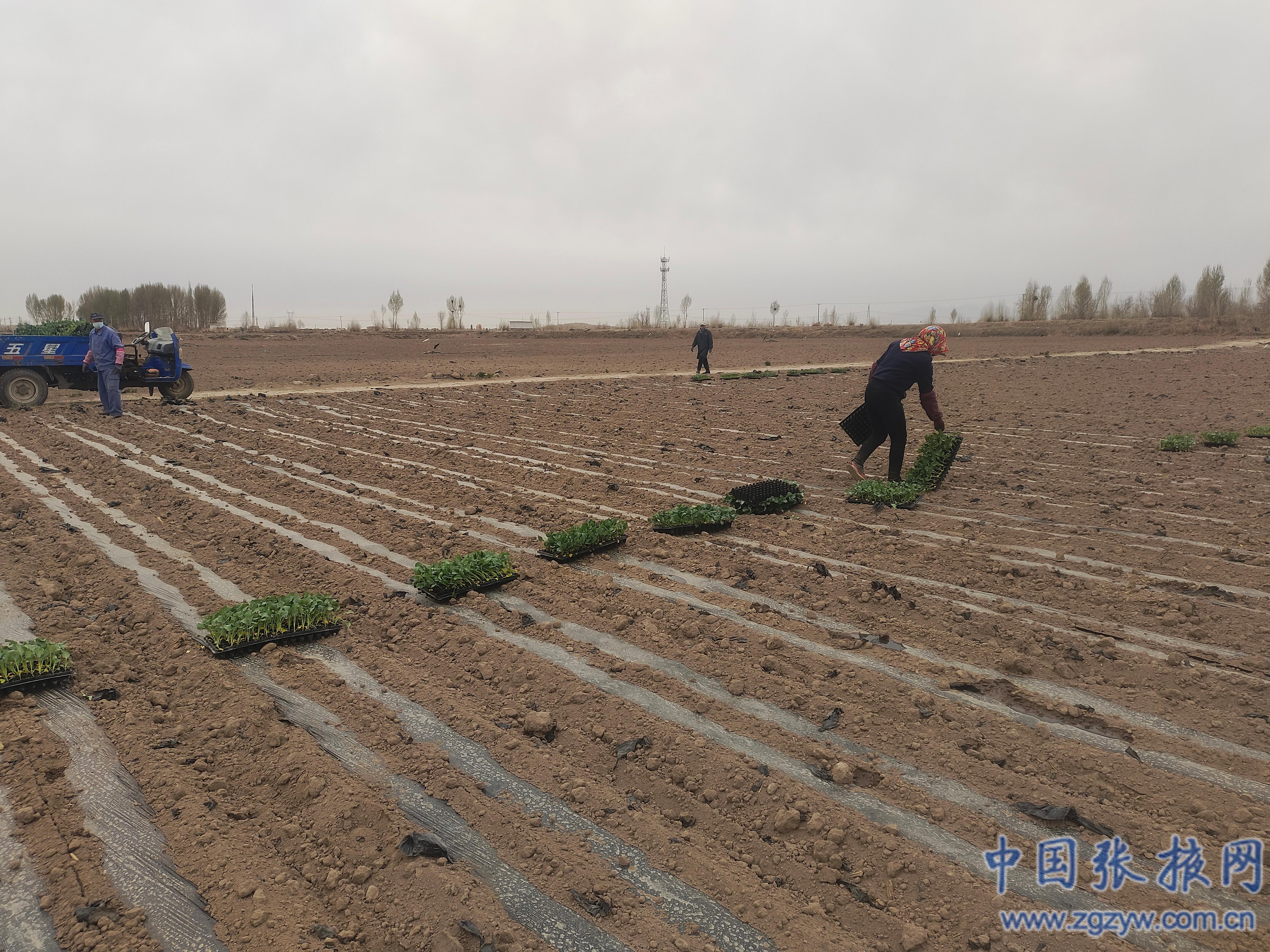 中國張掖網臨澤訊 草木逢春,迎春花開,正是栽種西藍花的好時機。近日,走進臨澤縣蓼泉鎮墩子村的供港澳西藍花基地,撒肥、放苗、蓋膜……幾十名村民正將一株株綠油油的西藍花幼苗移栽到田地里。
