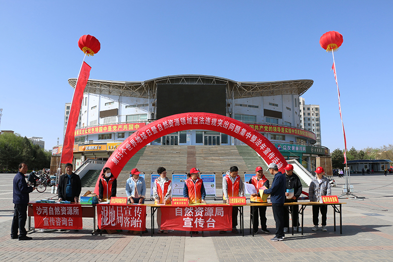 中國張掖網臨澤訊 4月22日,臨澤縣自然資源、林草、水務、濕地、市生態環境局臨澤分局在縣文化體育廣場設立主會場,開展第55個世界地球日暨自然資源領域違法違規突出問題集中整治年宣傳。