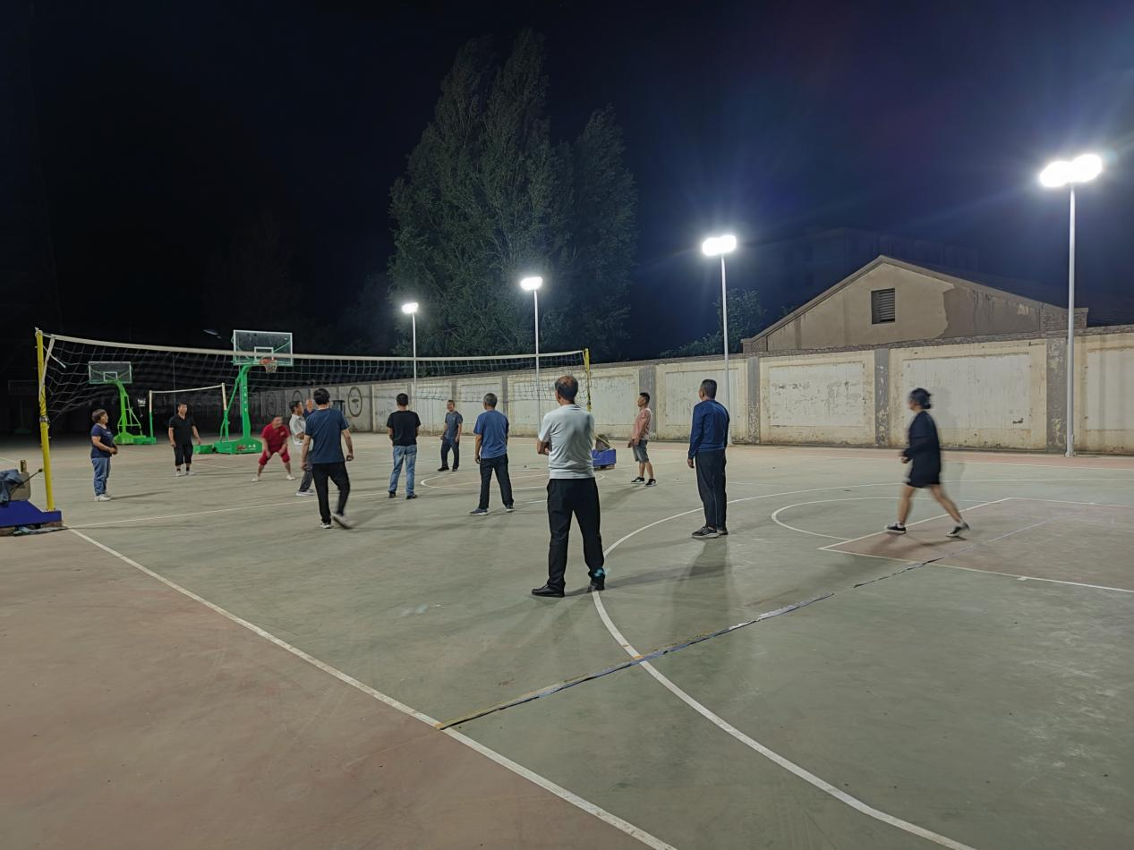 “現在天黑的遲了,來廣場上組隊打球的人也漸漸多了,我們兩口子晚飯后都會來這里打一會籃球或排球,這里燈光明亮,場地整潔,這支排球隊基本上每晚十點才散場。”正在參加排球賽的居民劉文明說道。