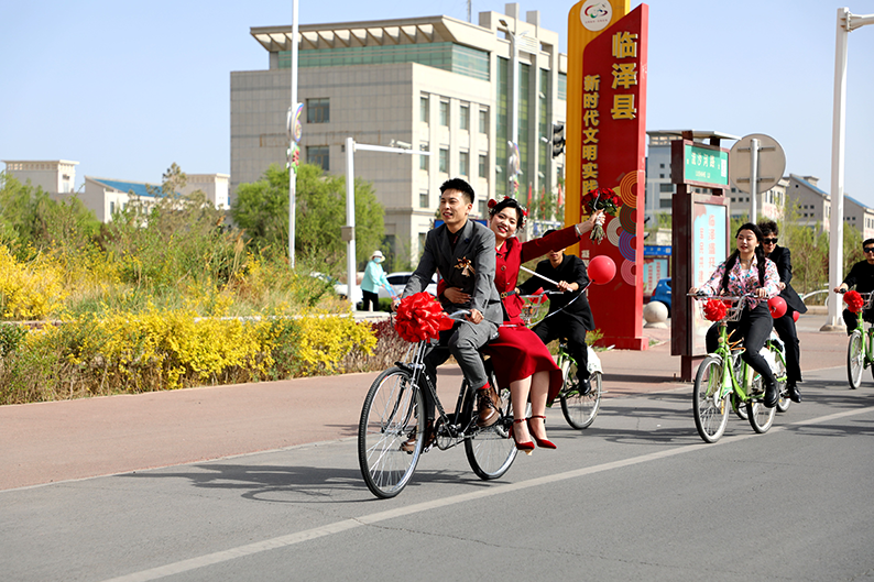 2024年4月21日,臨澤縣一對新人舉辦“單車”婚禮