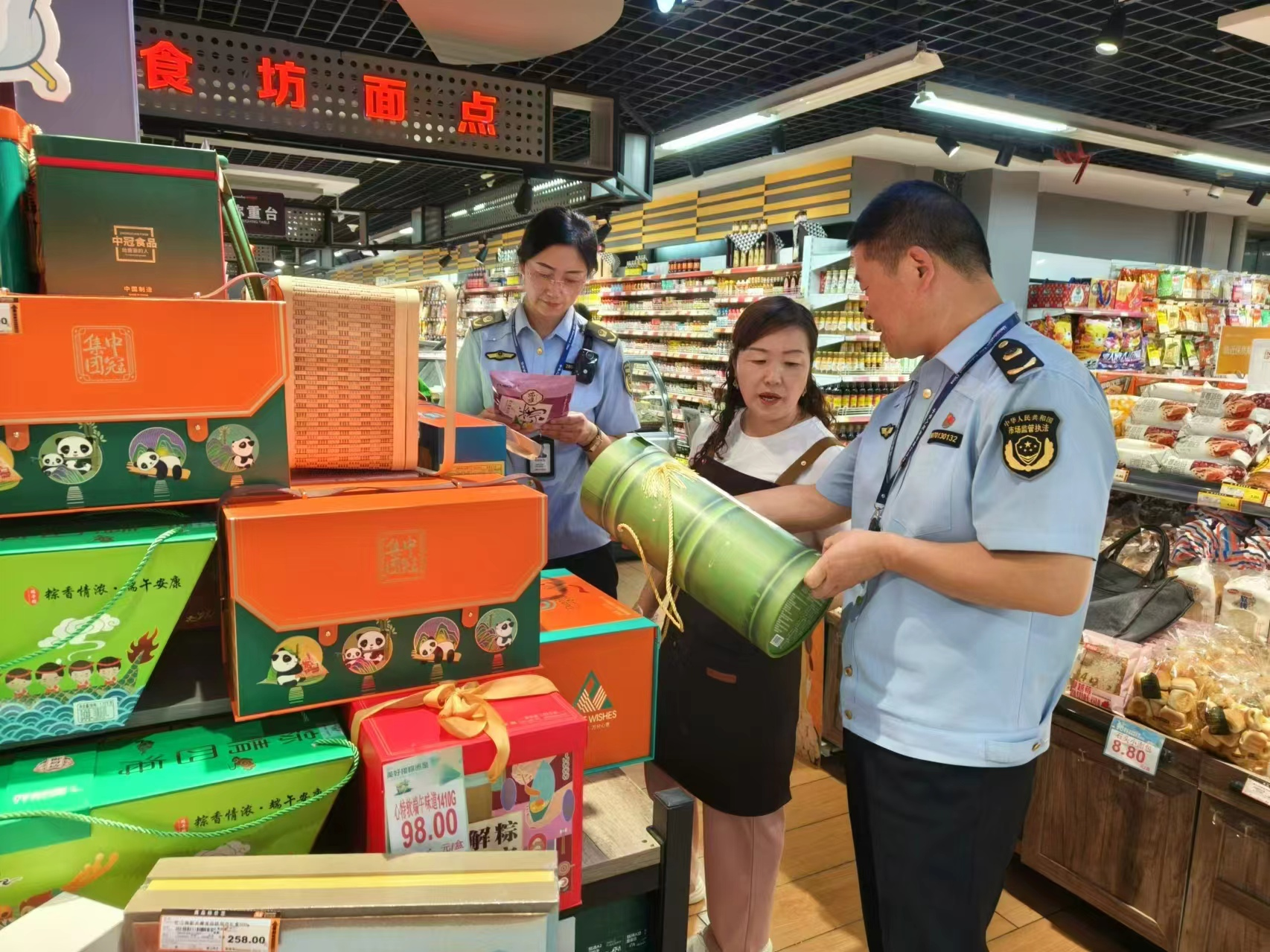 此次專項檢查以轄區大中型超市、食雜店為重點,主要檢查經營場所內外是否做好“三防”措施;查看粽子產品外包裝標簽標識是否齊全,生產廠家、生產日期、保質期、配料表等標識是否清晰完整;經營者是否履行進貨查驗,能否提供相應供貨商資質、進貨票據、檢測報告等材料及采購臺賬記錄等。同時,檢查人員還積極開展《中華人民共和國食品安全法》《限制商品過度包裝》等法律法規的宣傳引導,進一步增強經營主體的守法經營意識和食品安全管理意識,要求經營主體嚴格按照國家標準執行,杜絕過度包裝。