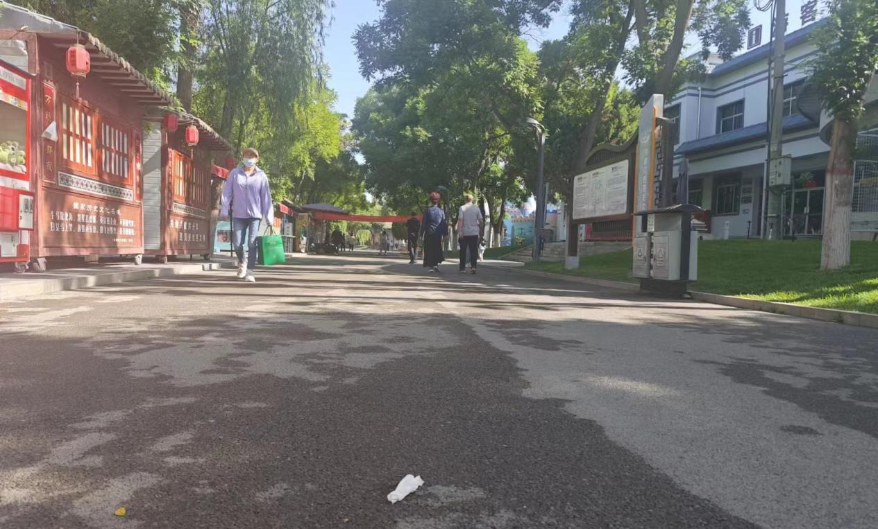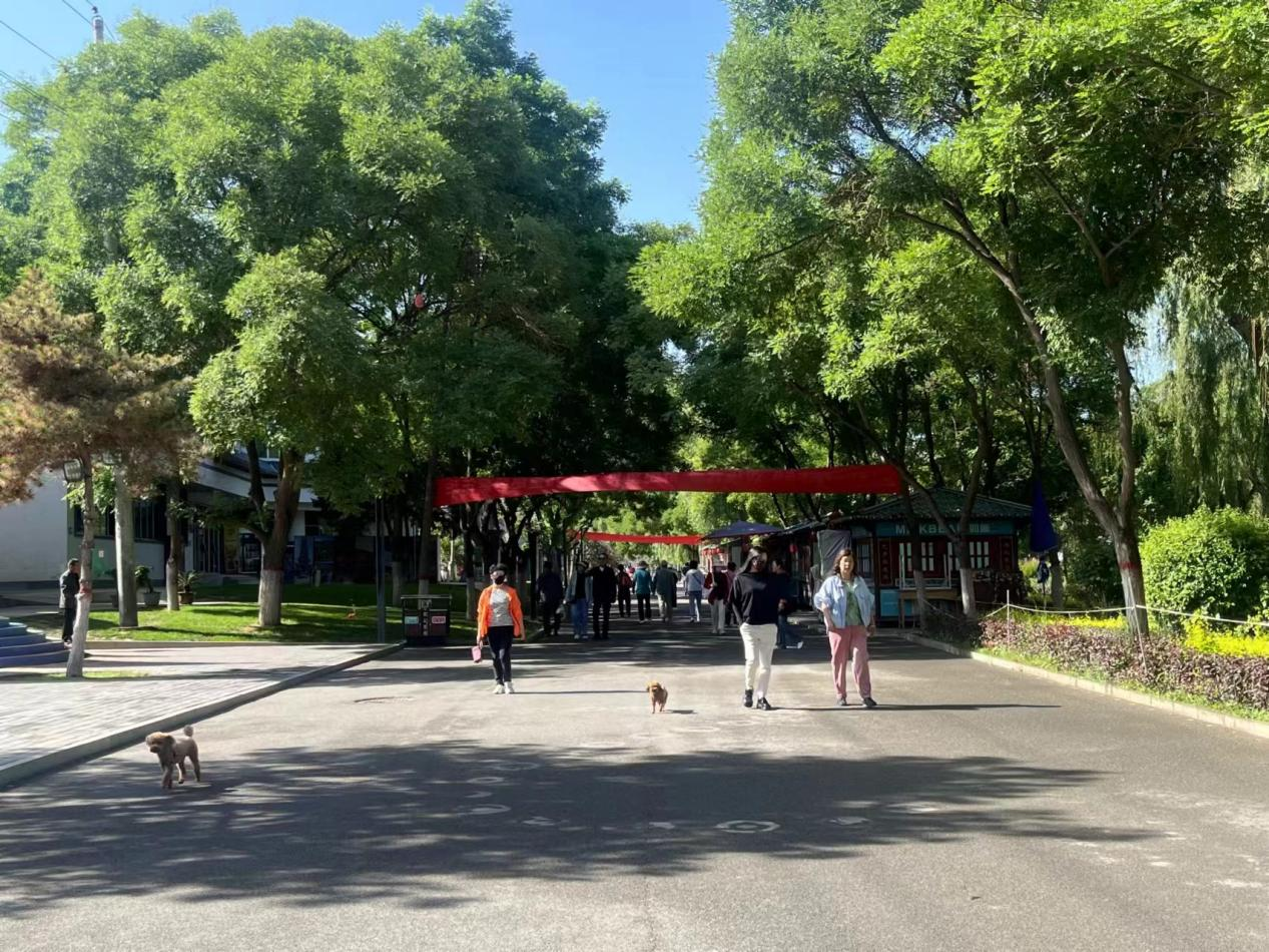 記者走在甘泉公園發現,大多市民能做到文明游園,但仍有個別市民出現遛狗不牽繩、隨意停放車輛等不文明行為。