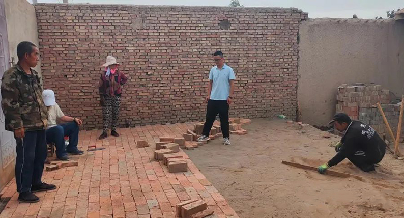 劉玉蘭是李家墩村獨居的突發(fā)嚴(yán)重困難戶,駐村工作隊在常態(tài)化入戶走訪期間,發(fā)現(xiàn)劉玉蘭的院子坑坑洼洼不整潔,一旦下雨嚴(yán)重影響出行。駐村工作隊立刻向鎮(zhèn)黨委匯報了情況,隨后,鎮(zhèn)包村領(lǐng)導(dǎo)實地了解情況后現(xiàn)場與駐村工作隊、村“兩委”負(fù)責(zé)人商定整改方案。隨后,在鎮(zhèn)政府號召下,愛心企業(yè)平順村美麗村莊建設(shè)項目施工公司向困難群眾伸出援助之手,贈送3000余塊紅磚并拉運上門。在包村干部、駐村工作隊、村干部和周邊鄰居齊心努力下,鏟土、鋪沙、運磚、灌縫子一套程序井然有序,不到1天的時間,就把劉玉蘭家的院子鋪得平平整整。