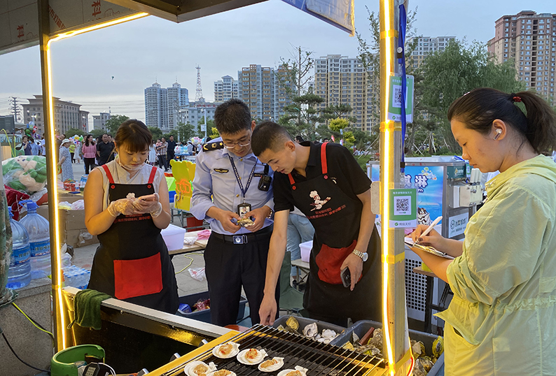 該所重點對轄區(qū)52家燒烤店、4家夜市經營單位是否亮證經營、從業(yè)人員是否取得健康證、后廚和就餐場所環(huán)境是否干凈衛(wèi)生、病媒防治設施是否齊全、原料采購是否履行進貨查驗制度、食材存放是否符合規(guī)范、經營場所是否存在過期腐爛變質食品等情況全面排查。檢查中,執(zhí)法人員要求經營單位切實履行主體責任,嚴把食品質量關,厲行節(jié)儉,反對餐飲浪費。同時,提醒廣大市民夏季高溫食物易腐敗變質,大家在享受美食過程中,要格外關注食品安全,培養(yǎng)良好用餐習慣,發(fā)現問題隱患及時撥打“12315”投訴舉報。