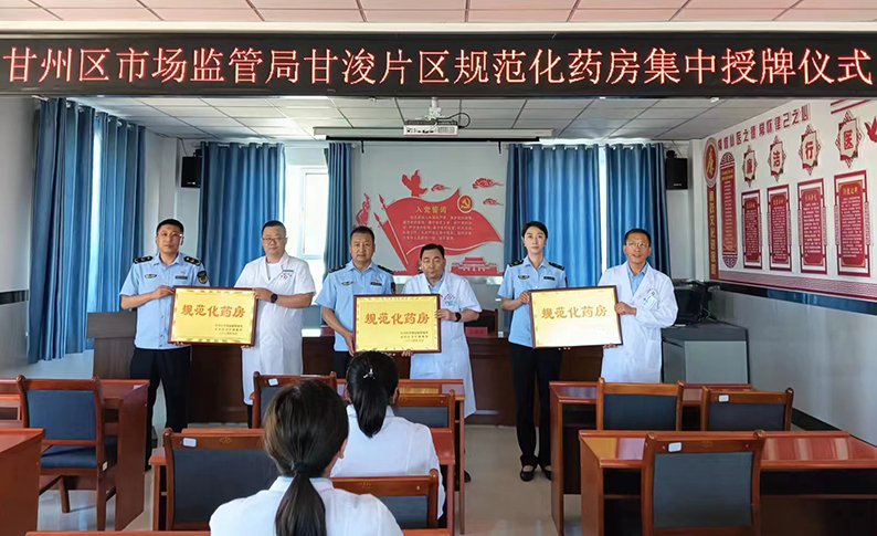 中國張掖網甘州訊 為積極推進基層醫療機構規范化藥房鞏固提升工作,7月3日,甘州區市場監督管理局甘浚片區開展了規范化藥房集中授牌儀式。