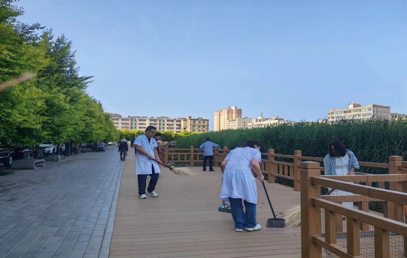 加強衛(wèi)生整治。落實環(huán)境衛(wèi)生管理制度。每周組織對轄區(qū)主干道、綠化帶垃圾和房前屋后衛(wèi)生死角等重點部位和包抓區(qū)域進行集中清理整治,凈化醫(yī)院內(nèi)外環(huán)境。落實點位長制度。各科室負責(zé)人、護士長是創(chuàng)建國家衛(wèi)生城市的點位長,每日2次組織科室人員對責(zé)任區(qū)域環(huán)境衛(wèi)生進行清掃,杜絕“衛(wèi)生單位不衛(wèi)生”現(xiàn)象。落實醫(yī)療廢物和污水處理管理制度。嚴格醫(yī)療廢物處置流程,招標污水處理專業(yè)廠家及時處置污水,確保醫(yī)療廢物和污水得到規(guī)范處置。落實垃圾分類制度。對生活垃圾和醫(yī)療垃圾嚴格分類管理、分類放置,每日專人負責(zé)清運,相關(guān)責(zé)任科室負責(zé)實施垃圾集中管理、集中處置。五是落實“除四害”制度。在藥庫、膳食坊等重點區(qū)域定期投放滅蠅滅鼠藥物,加強病媒生物防制工作,保障患者用藥安全和食品安全。