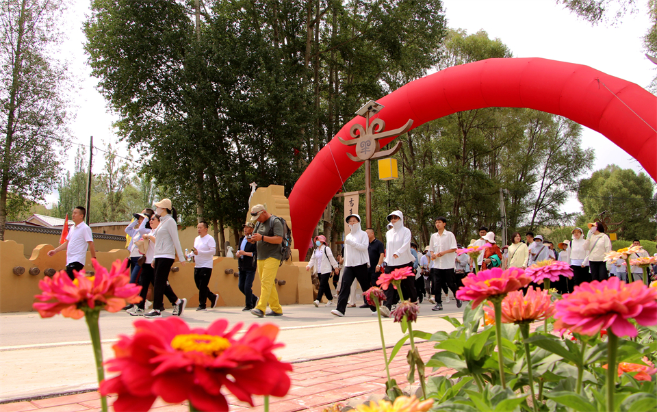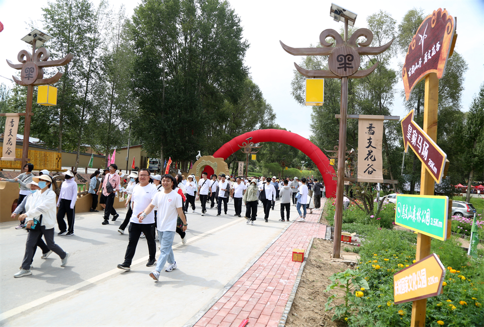 中國張掖網山丹訊 千人徒步探幽花谷、觀看文藝節目展演、品嘗特色美食、打卡稻草卡通雕塑……7月26日,山丹縣羊主莊園開園儀式暨焉支花谷千人徒步活動在大馬營鎮中河村舉行,來自全縣1000多名徒步愛好者相聚在“焉支花谷·羊主莊園”,用足跡丈量和美鄉村,用眼簾盡收生態美景。