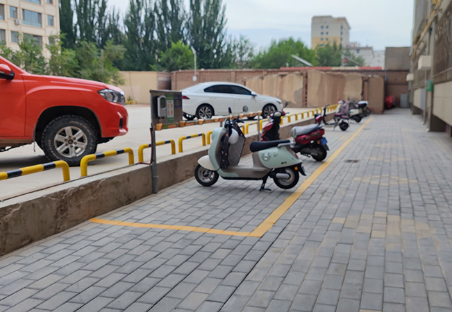 新安裝的充電樁位于動檢站家屬院北樓北側的非機動車停車區(qū)域。動檢站家屬院修建于1999年,屬于老舊小區(qū),共有兩棟住宅樓,自2023年進行老舊小區(qū)項目改造后,由于受地域限制,北樓沒有非機動車停車區(qū),致使北樓住戶車輛充電不便,小區(qū)的“飛線”隨處可見,存在很大安全隱患。