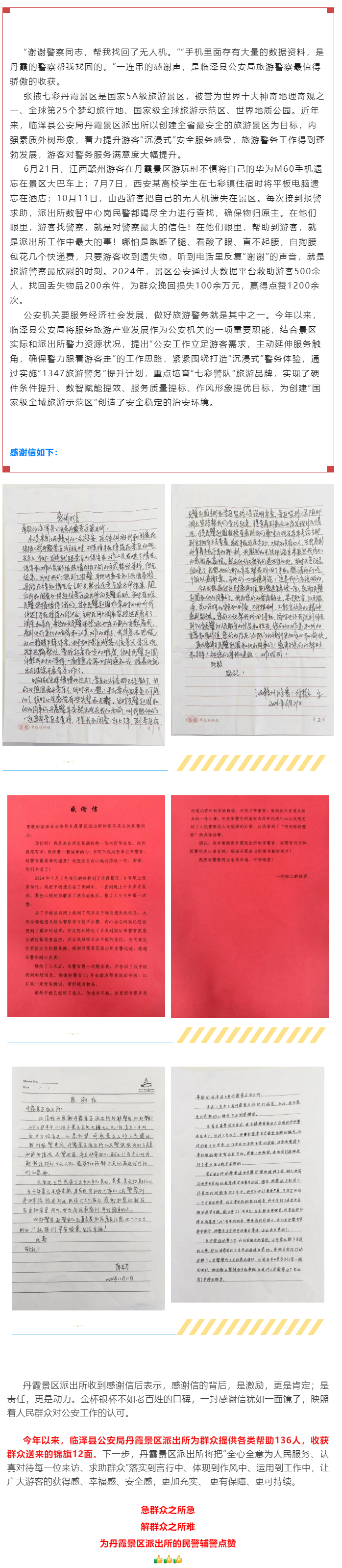 【旅游警務】紙短情長丨這些感謝信,臨澤公安收到啦!