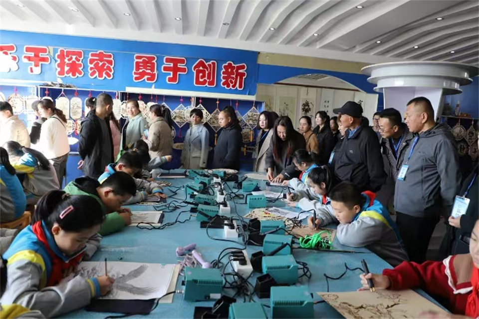 隨后,家長們參觀了學(xué)校。精彩紛呈的社團(tuán)活動(dòng)讓家長們眼前一亮。腰鼓、輪滑、創(chuàng)意手工、烙畫等社團(tuán)活動(dòng)不僅豐富了孩子們的課余生活,更培養(yǎng)了他們的興趣愛好和特長。