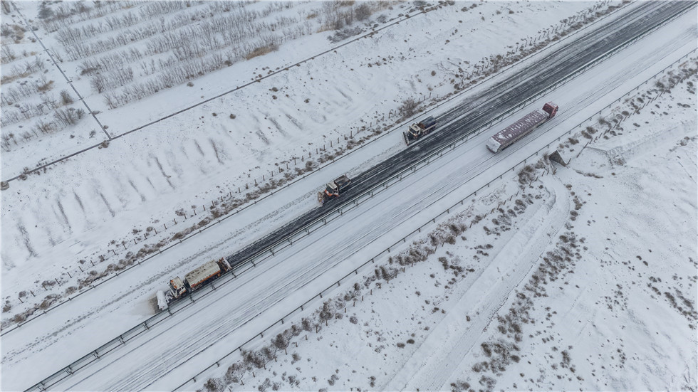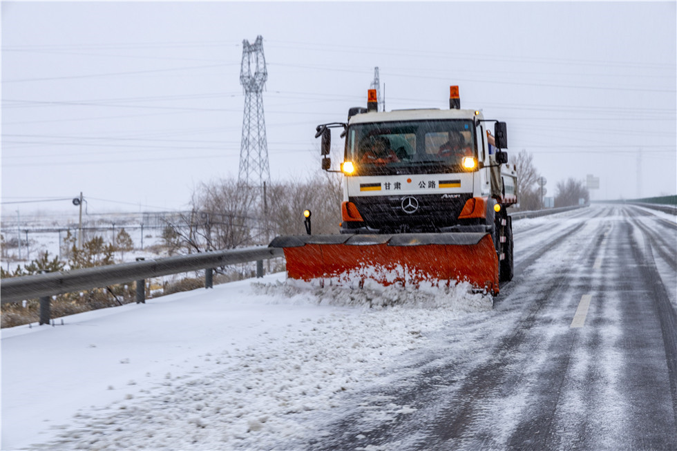 降雪發生后,張掖公路事業發展中心以雪為令,迅速組織機械、人員按照“雪中路通、雪后路暢、隨下隨清”的工作原則,采取機械往返逐段除雪的方式,并在橋面、急彎陡坡、長下坡、背陰易滑路段撒鋪防滑料和融雪劑,全力以赴降低路面積雪對行車造成的影響,保障過往車輛的安全通行。
