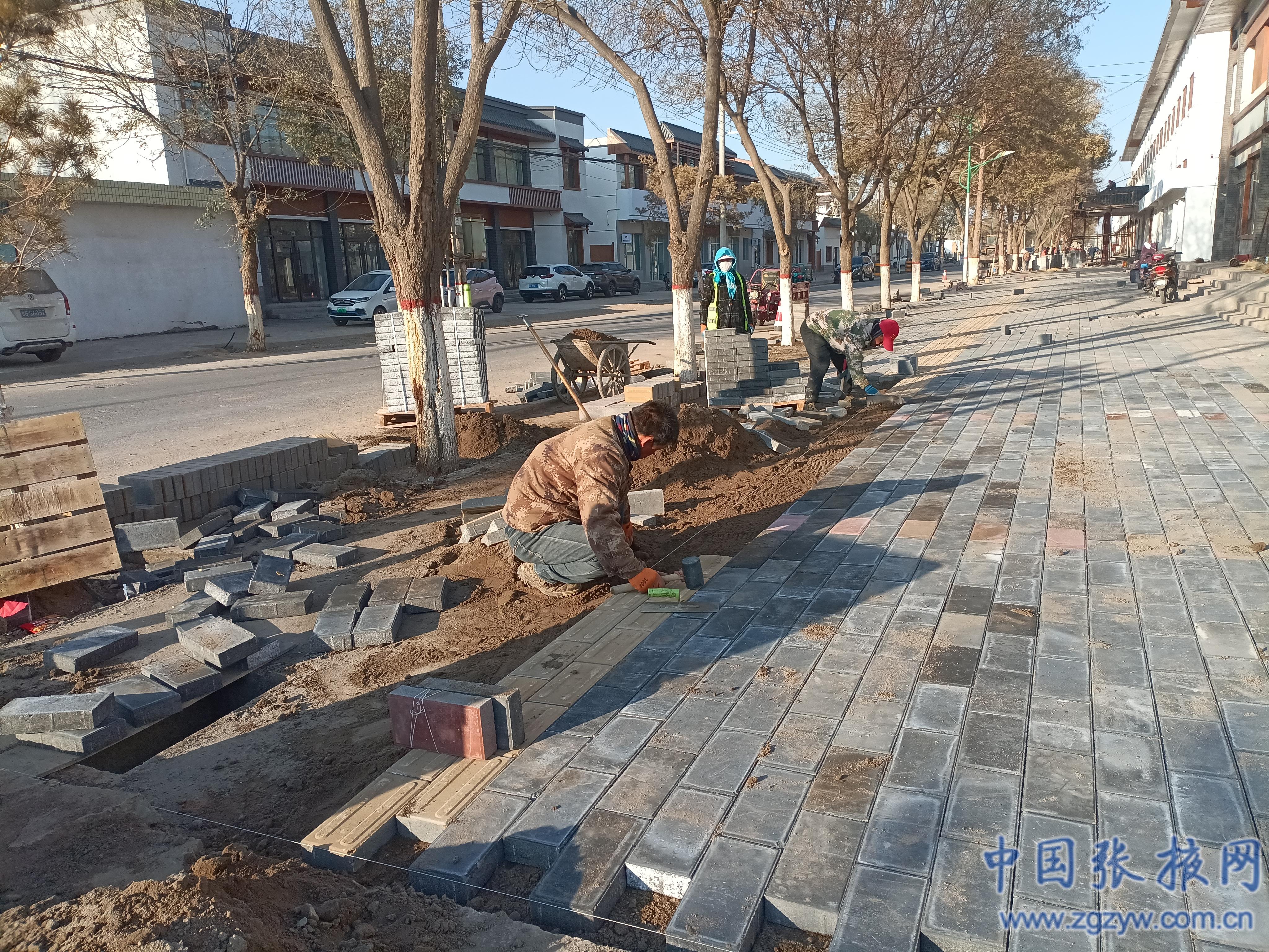 中國張掖網臨澤訊 冬日不閑,項目施工忙,連日來,在臨澤縣蓼泉鎮集鎮改造項目施工現場,工人們正在對沿街政府段鋪設面包磚,一派緊張有序的景象。