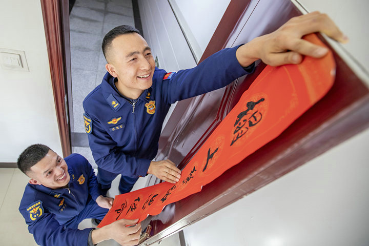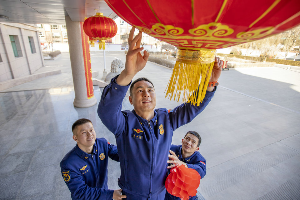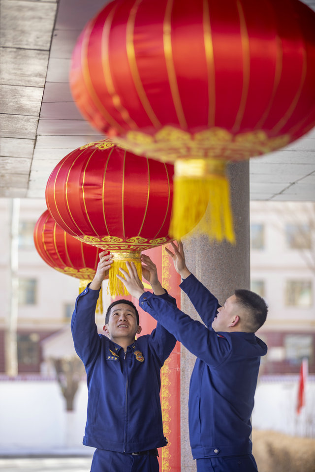網絡中國節 · 春節 | 甘肅省森林消防總隊張掖支隊:貼對聯 掛燈籠 消防營區年味濃