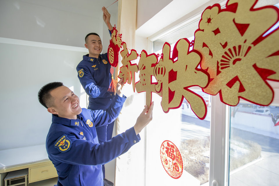 中國張掖網訊 1月27日,甘肅省森林消防總隊張掖支隊的隊員們在營區貼春聯、懸掛燈籠,營造濃濃的年味。春節期間,這些消防隊員們放棄和家人團聚的美好時光,堅守在自己崗位,守護一方平安。
