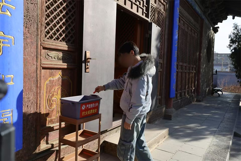 大佛寺作為張掖的重要文化旅游景點,承載著深厚的歷史文化底蘊。春節(jié)期間,這里張燈結(jié)彩,新春氛圍濃郁,吸引了大量游客前來參觀祈福。由于大佛寺內(nèi)多為木質(zhì)結(jié)構(gòu)建筑,且存有眾多珍貴文物,防火安全至關(guān)重要。景區(qū)在入口處顯著位置設(shè)置了打火機存放處,并安排工作人員耐心引導(dǎo)游客。