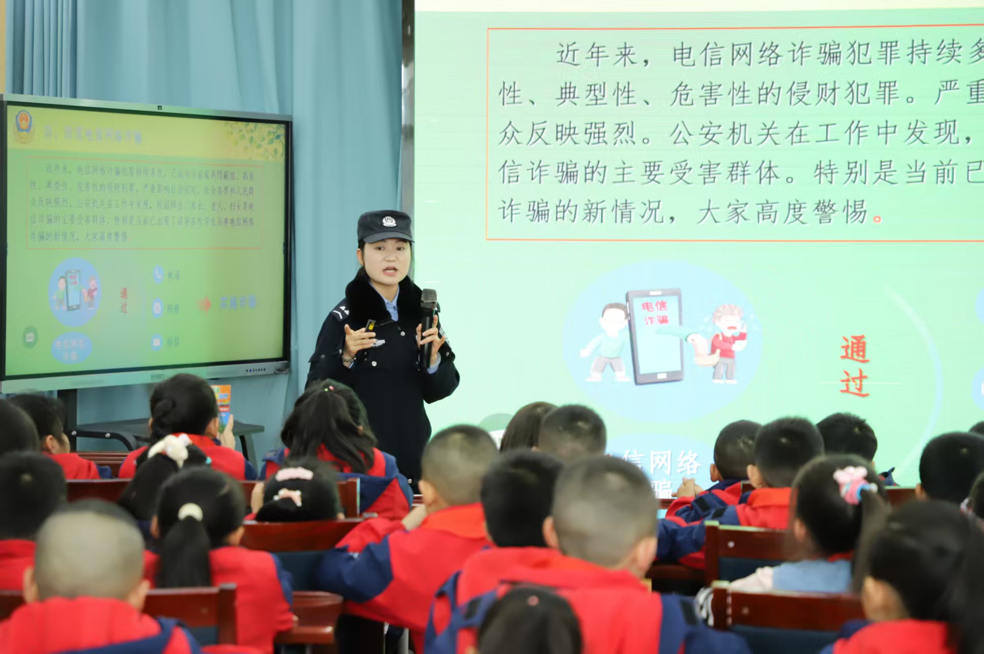 在民樂縣東浦小學,學校邀請交警大隊警官為師生上了一堂交通安全“開學第一課”,安全課上,警官通過身邊案例列舉、知識問答、情景模擬實驗、交通手勢操學習等環(huán)節(jié),向師生們傳授安全出行常識,讓學生們身臨其境感受參與道路交通的過程。讓學生沉浸其中,收獲滿滿,有效增強了學生的安全意識。同時,學校還邀請派出所民警給學生送上防詐“開學第一課”,讓學生們了解身邊的詐騙陷阱,提高防騙意識。