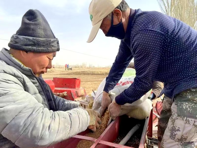 在臨澤縣鴨暖鎮(zhèn)古寨村,大型播種機(jī)來回穿梭,一粒粒飽滿的小麥種子被精準(zhǔn)的播撒進(jìn)土地,并同時(shí)完成了施肥、覆土等工序。每一個(gè)步驟都嚴(yán)謹(jǐn)細(xì)致,確保種子能夠及時(shí)發(fā)芽、茁壯成長。