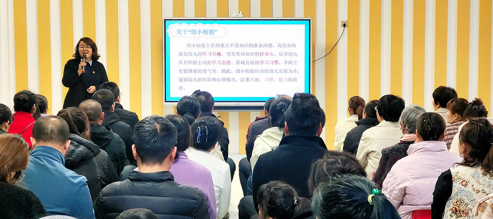 暢通雙向?qū)υ挘仓\成長路徑。充分利用實驗小學一年級在該園開展日托班的便利條件,實時帶領(lǐng)幼兒觀摩一年級課堂、學習環(huán)境,與一年級同學互動交流,激發(fā)大班幼兒對小學生活的憧憬與向往。邀請一年級經(jīng)驗豐富的黨員教師以“溝通銜接,合力共護”為主題進行幼小銜接家長培訓(xùn)會,給出“四備”建議(備心理、備習慣、備能力、備家校協(xié)作),緩解家長焦慮,構(gòu)建雙向奔赴的銜接模式。