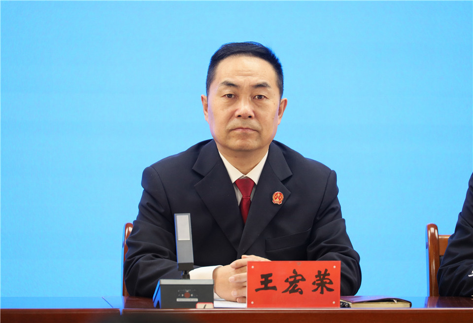 主持人:請市法院黨組副書記、副院長王宏榮先生,回答這位記者的提問。
