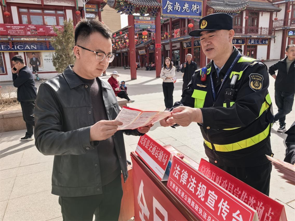 中國張掖網民樂訊 為增強全民國家安全意識,筑牢國家安全人民防線,在第十個“4·15”全民國家安全教育日來臨之際,省高速路政總隊民樂大隊聯合民樂縣交通局、應急管理局等部門,在民樂縣中心廣場舉辦以“全民國家安全教育走深走實十周年”為主題的宣傳活動,通過多形式普法、零距離互動,向群眾普及國家安全法律知識及高速公路安全法規。