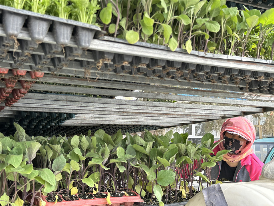 “辣椒苗、茄子苗、黃瓜苗、草莓苗樣樣都有,帶原土,好成活……”正逢趕集日,最熱鬧的當(dāng)屬這四五家菜苗攤位,記者看到集鎮(zhèn)街道旁擺放著成盤成盤的花卉菜苗,葉片嫩綠,顯得生機(jī)盎然,菜苗商販正叫賣著各種菜苗,已經(jīng)吸引了不少群眾穿行其中,詢問價格、品種、種植方法等,攤販則熱情地向群眾介紹引進(jìn)的菜苗特性及管護(hù)方法,幫助他們選擇心儀的苗木。
