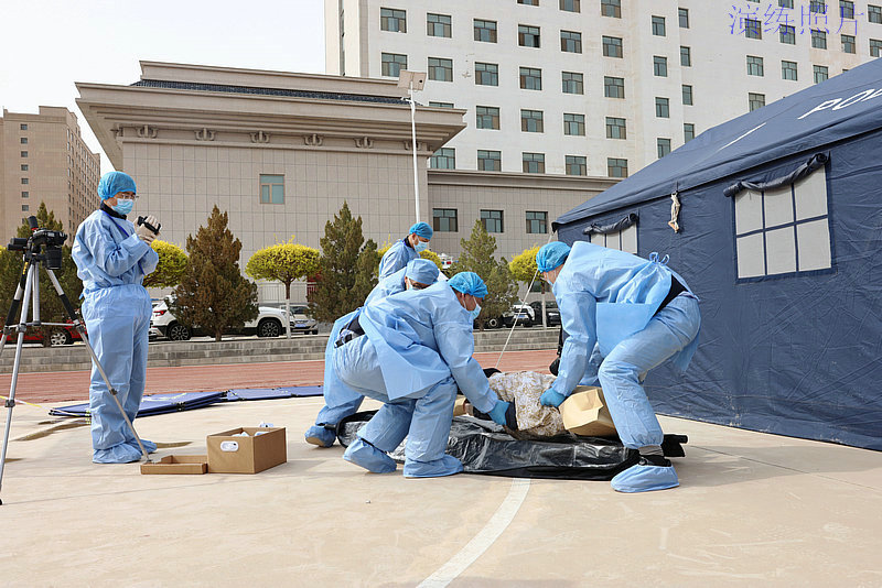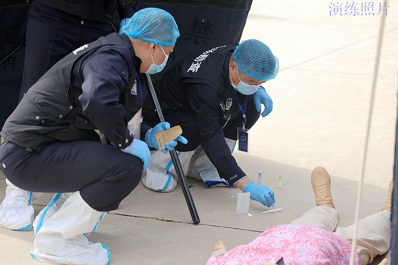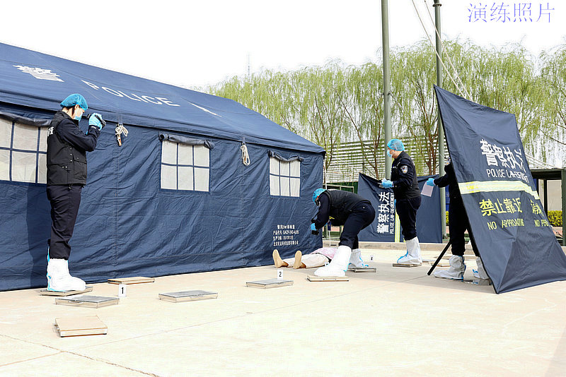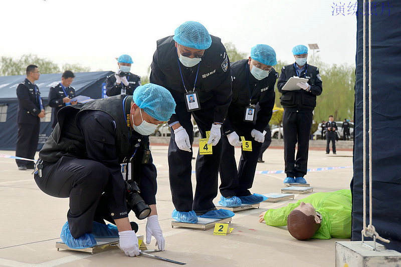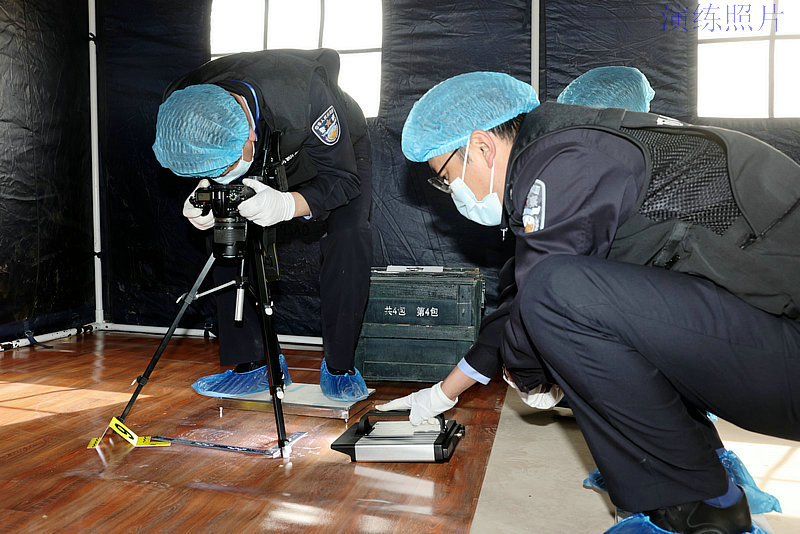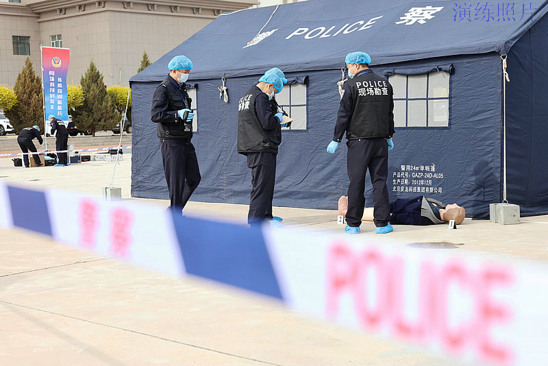 圖為:法醫(yī)、痕跡、電子物證等專業(yè)領(lǐng)域的參賽選手開展現(xiàn)場(chǎng)保護(hù)、物證固定提取等一系列工作。
