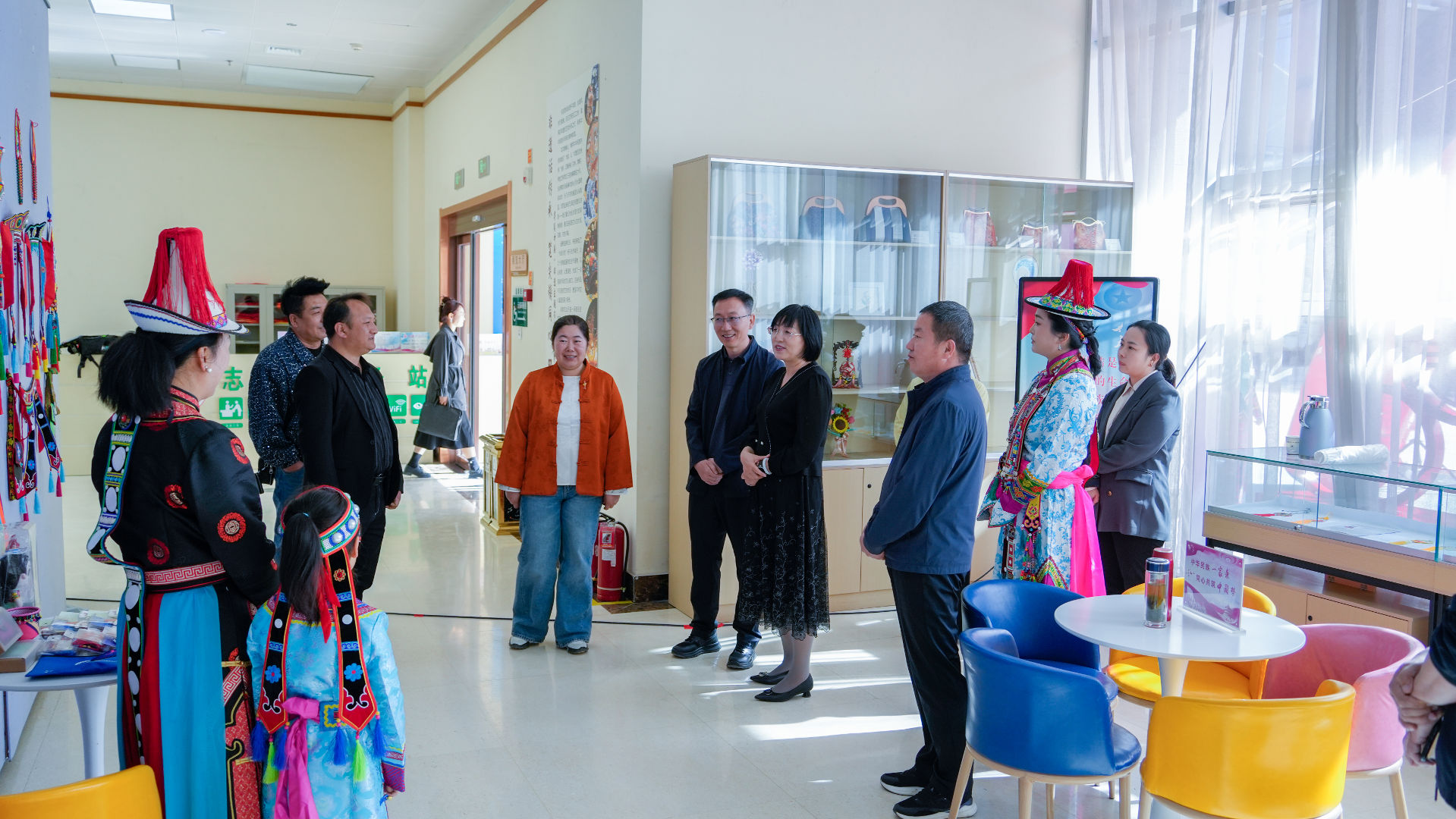 活動以“非遺+書畫”的形式,分展覽體驗、舞臺展演兩個環節。展覽體驗環節設美術非遺、書法非遺展廳和互動體驗空間:美術非遺展廳陳列龍、鳳紋青花瓷展板、敦煌飛天元素手繪琵琶、藻井紋樣裝置以及展現云肩、醒獅、皮影等主題的20米國風長卷和懸掛漆扇、京劇臉譜的“非遺寶藏墻”,掃碼即可聆聽非遺故事;書法非遺展廳展示甲骨文、青銅銘文等三星堆文字書法,仿青花瓷板書法作品,裕固族刺繡、皮雕等民俗手工藝品;互動體驗區中,親子家庭積極參與扎染方巾、馬勺臉譜繪制、剪紙等非遺手作感受技藝魅力,“中華民族一家親”書法共創臺吸引觀眾書寫祝福語,傳遞團結心聲。舞臺展演環節以非遺、民歌、舞蹈、民樂展示為主,通過裕固族民歌演唱、刺繡技藝現場展示、古典舞蹈表演、民樂演奏等,讓觀眾沉浸式感受非遺魅力與民族藝術風采,進一步增進對中華優秀傳統文化的認知與熱愛。