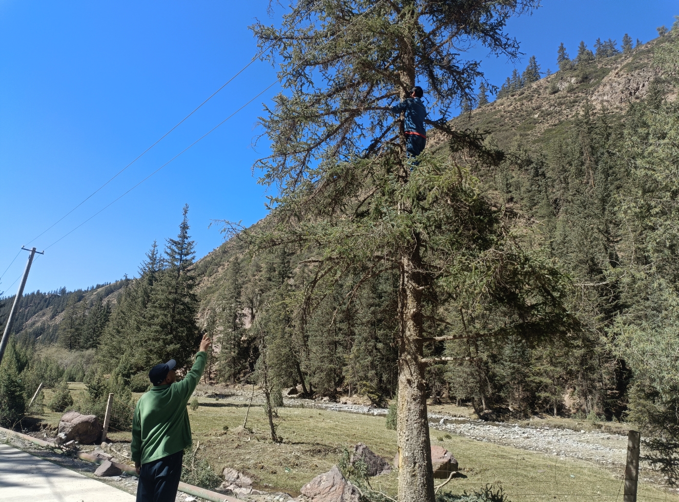中國(guó)張掖網(wǎng)肅南訊  肅南縣康樂自然保護(hù)站上游資源管護(hù)站協(xié)同電力部門工作人員深入轄區(qū),對(duì)林區(qū)輸電線路展開“地毯式”排查,消除因輸電線路引發(fā)的森林火災(zāi)隱患,降低因輸電線路問題引發(fā)森林火災(zāi)的風(fēng)險(xiǎn),全力保障林區(qū)森林資源安全。