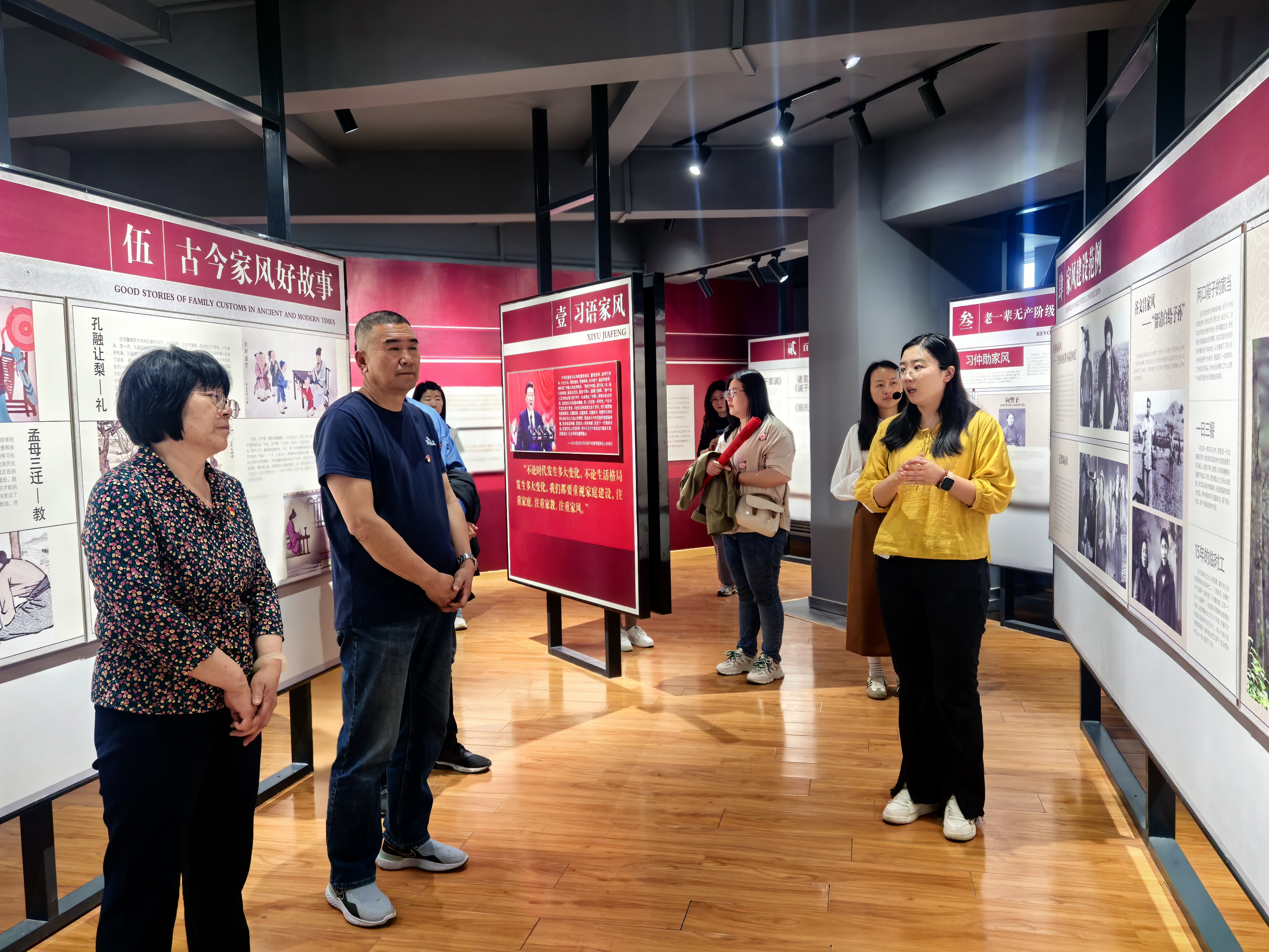 五月的家風教育館人頭攢動、如火如荼,在參觀過程中,有學生在“習語家風”展廳駐足,拍照記錄習近平總書記關于家庭家教家風工作的重要論述;有老人在“老一輩無產階級革命家紅色家風”的展板前停留,回憶崢嶸歲月,感慨當下盛世;有父母在“古今家風好故事”的展板前品味,輕聲為孩子講解……據了解,家風家教宣傳月期間,共開展“厚植家國情懷·傳揚優良家風”“七個一”主題黨日活動20多場次,全市10余個單位200余名黨員干部家屬積極參與。