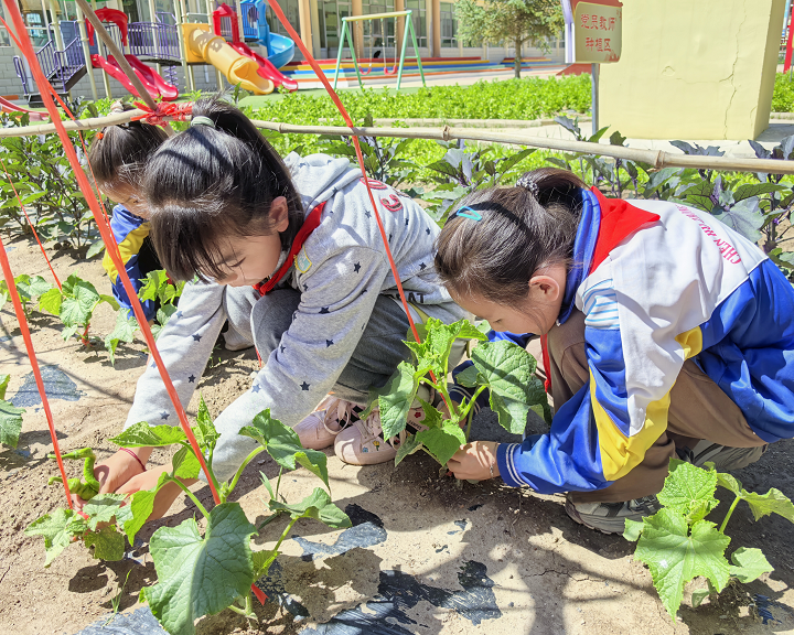 山丹縣陳戶鎮中心學校依托自身地理位置與自然環境,打造了獨具特色的勞動教育實踐基地。該基地以班級為單位劃分區域,每個班級都擁有屬于自己的“責任田”,形成了“一隊一作物,一隊一風格”的獨特格局,全校師生勞動參與率達100%。自開展勞動教育實踐活動以來,山丹縣陳戶鎮中心學校將勞動教育融入日常教學,讓學生們在實踐中學習,在學習中成長。通過參與勞動,學生們不僅提高了動手能力,還培養了耐心、細心和責任心,更深刻體會到“一分耕耘,一分收獲”的道理,懂得珍惜勞動成果。