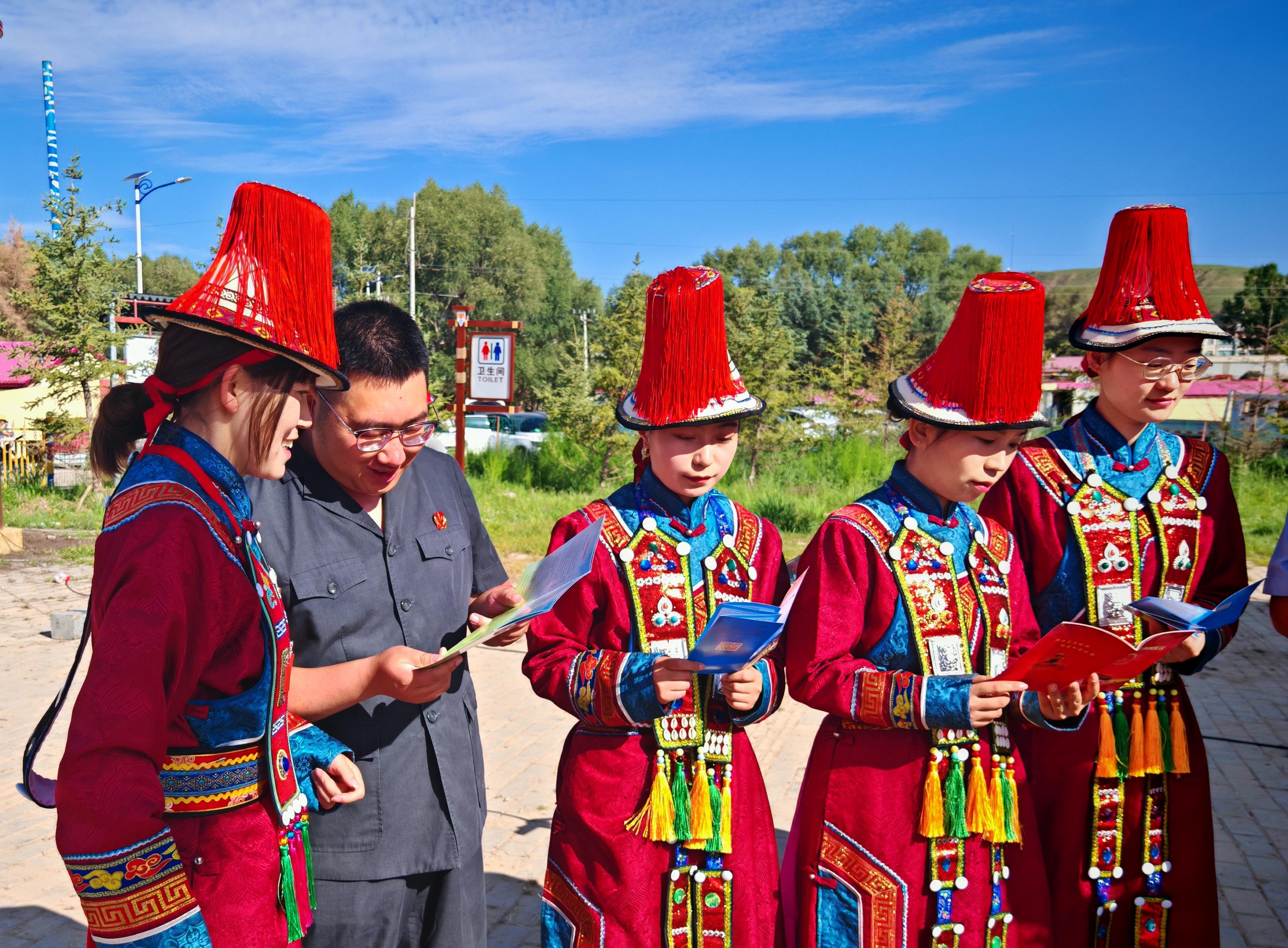 中國張掖網肅南訊  盛夏的肅南皇城草原,風光旖旎、游人如織,一場以“同心共筑中國夢·攜手奮進新時代”為主題的文藝展演暨農牧民運動會在皇城賽馬場熱烈舉行。肅南法院皇城法庭干警主動走出法庭,將專業的法治宣傳“舞臺”搬到了這片熱鬧的草原盛會現場。