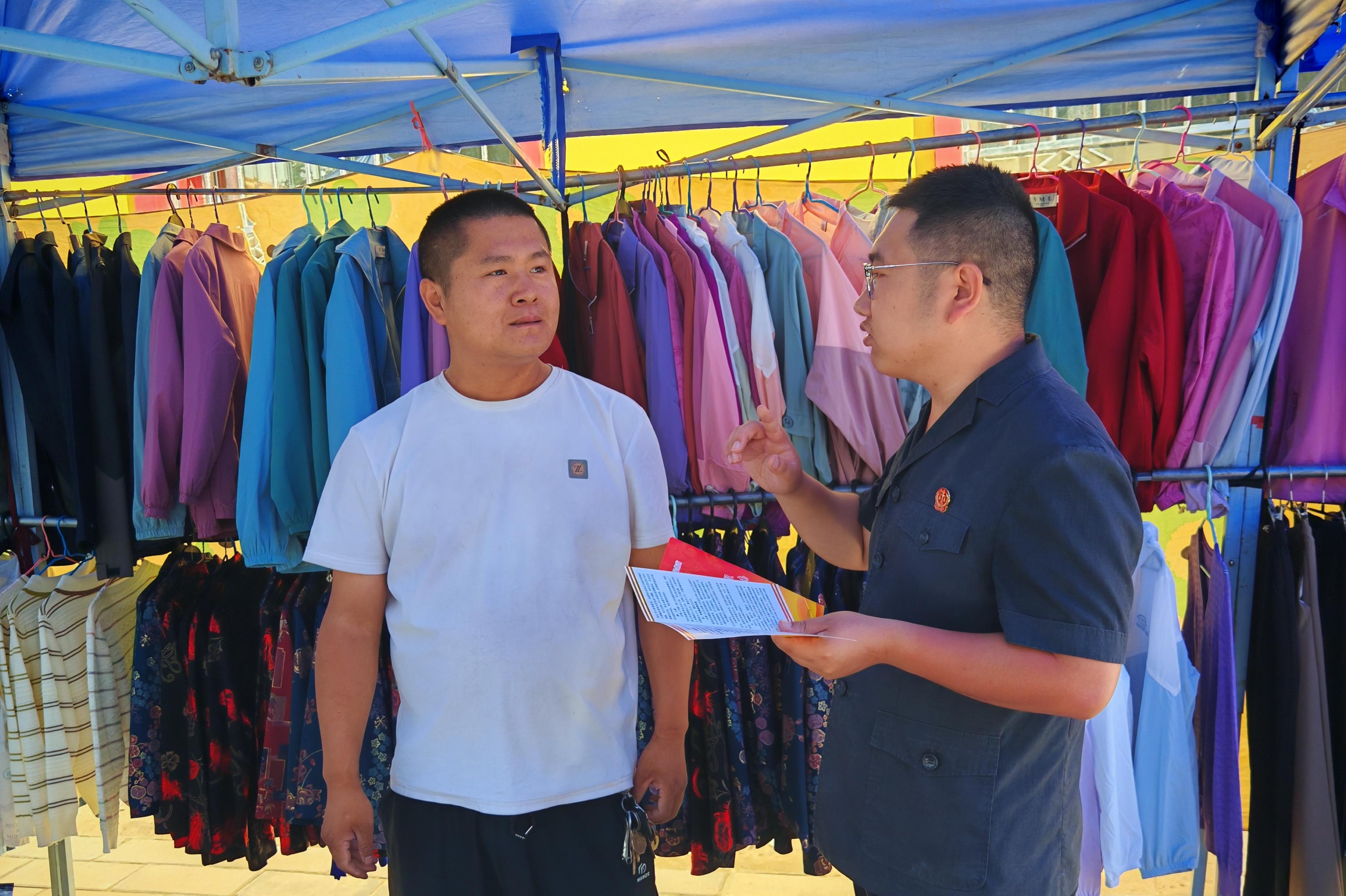 活動現場,法庭干警通過懸掛橫幅、發放宣傳手冊、設立咨詢臺面對面答疑等方式,向前來觀賞演出的游客、牧民群眾和個體商販宣講黨的民族政策、《中華人民共和國民法典》《消費者權益保護法》等法律法規。重點就合同簽訂、糾紛調解、消費者權益保護等與老百姓生產生活息息相關的法律知識進行講解,為提高農牧民群眾和個體商販法治意識,助力各民族共同富裕先行區建設筑牢法治根基。同時,法庭干警還向過往群眾推介了“移動微法院”“人民法院在線服務”訴訟服務小程序,指導個體商販通過線上平臺快速解決小額債務糾紛,減少訴訟成本,贏得商戶連連點贊,共同繪制了一幅草原上普法學法的生動法治畫卷。