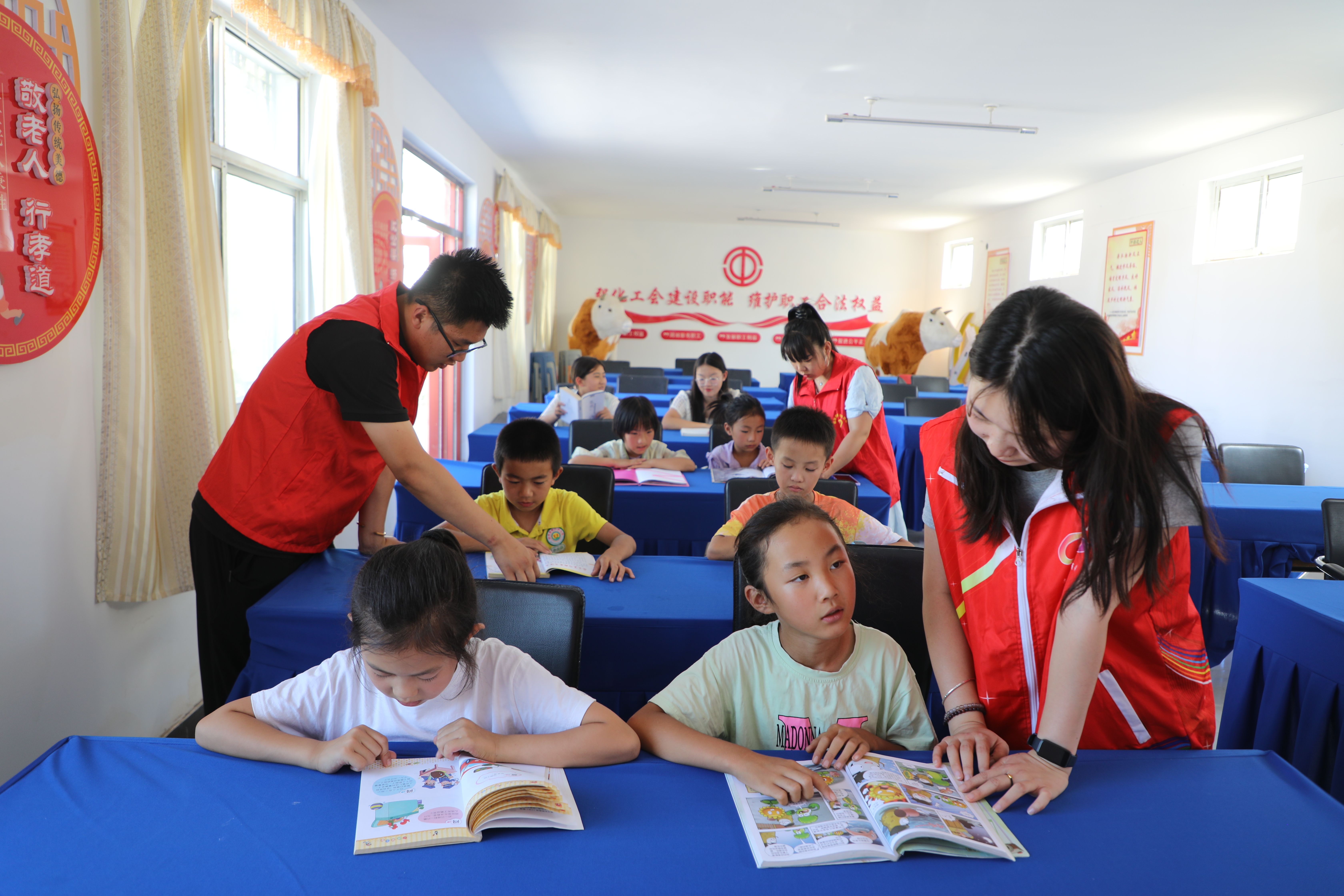 針對暑期學生課業輔導需求,倪家營鎮團委廣泛動員返鄉大學生、中小學教師等組成“課業輔導志愿服務隊”,采取“集中輔導+個別答疑”的方式,重點解決孩子們在學習中遇到的難題。